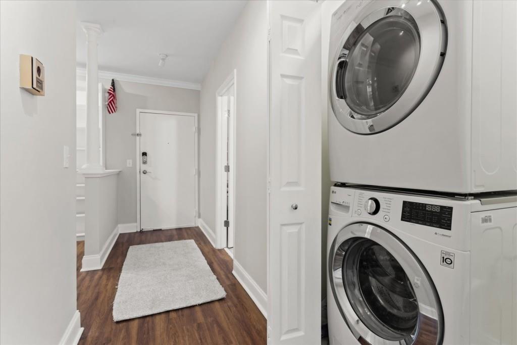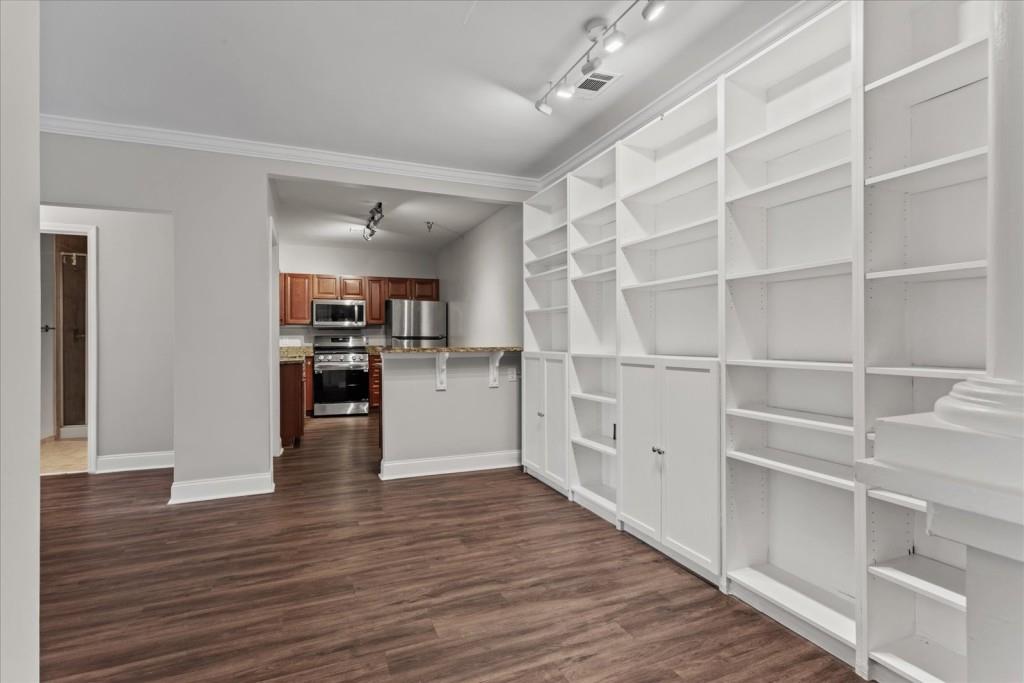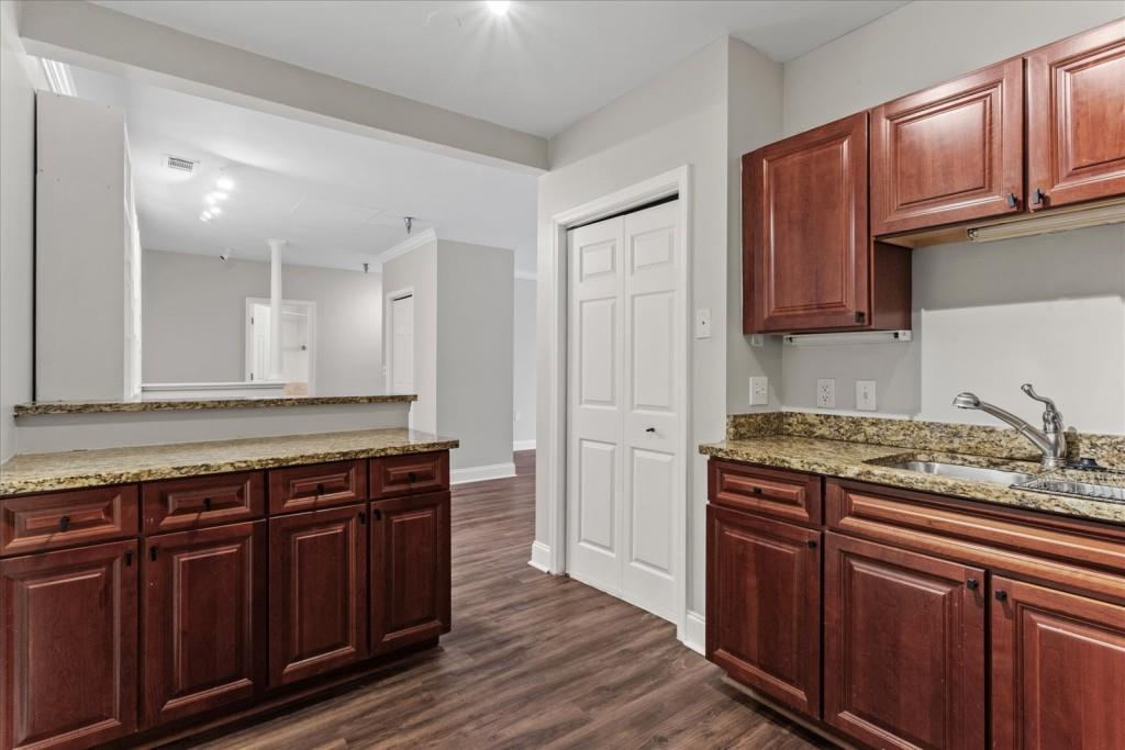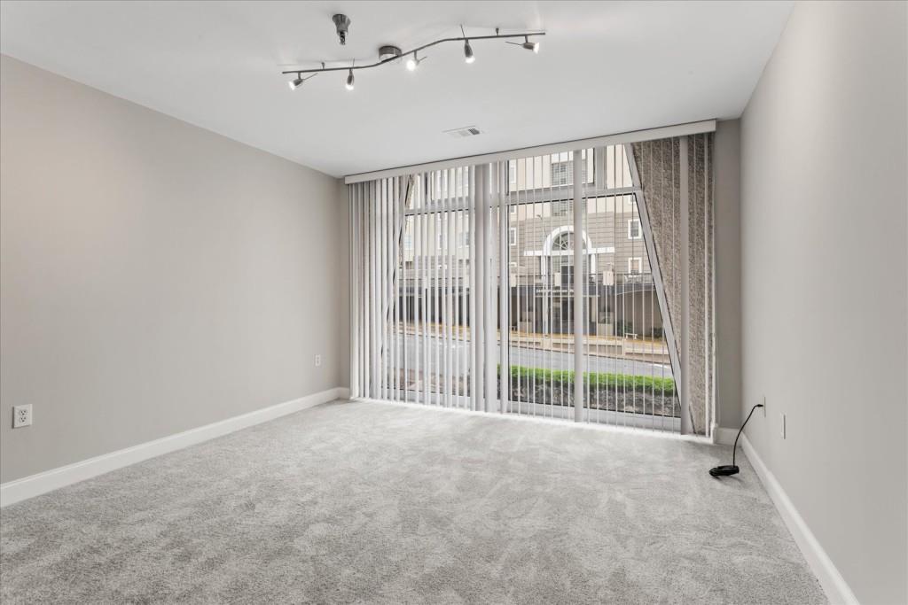 This updated 2-bedroom, 2-bathroom condo in Buckhead offers the largest 2-bedroom floorplan in the building, featuring brand-new paint throughout, durable LVP flooring in the living areas, and new carpet in both bedrooms. The open-concept layout includes spacious living and dining areas with built-in shelving for additional storage, while the kitchen is equipped with granite countertops, stainless steel appliances, and warm wood cabinetry. Both bedrooms are generously sized with ample natural light, and the primary bedroom includes an en-suite bathroom. The unit comes with two designated parking spaces and a secure storage area. Residents also have access to a community pool and sundeck, fitness center, 24 hour concierge, and common area with a pool table and work areas. Conveniently located near Buckhead's shopping, dining, and entertainment options, this property offers practical and comfortable living in a prime location.