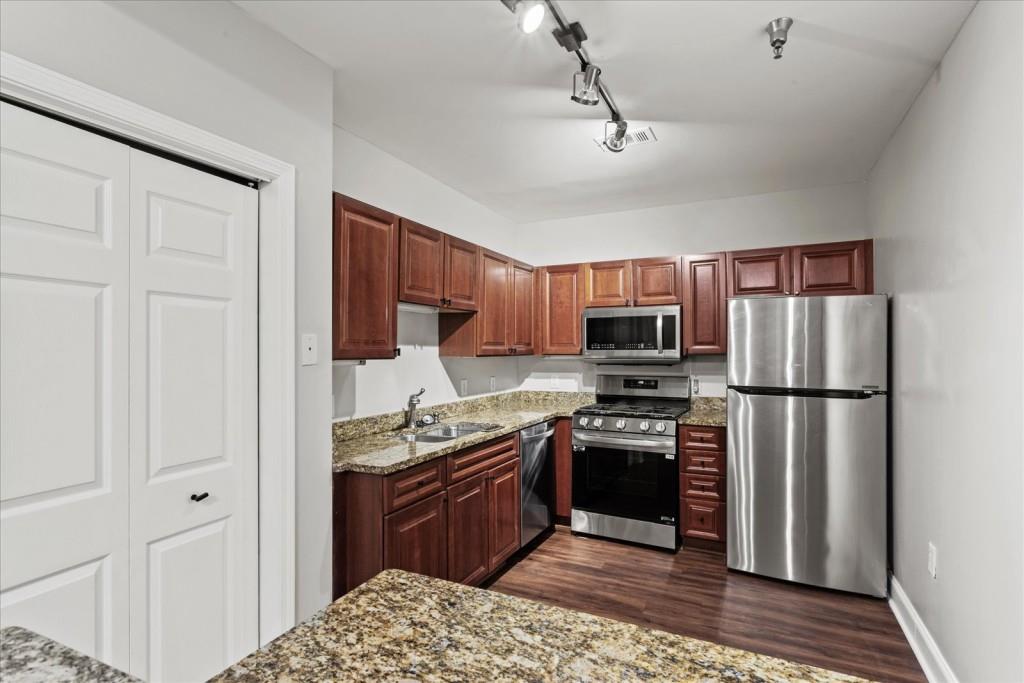 - AppliancesDishwasher, Disposal, Gas Range, Microwave, Refrigerator