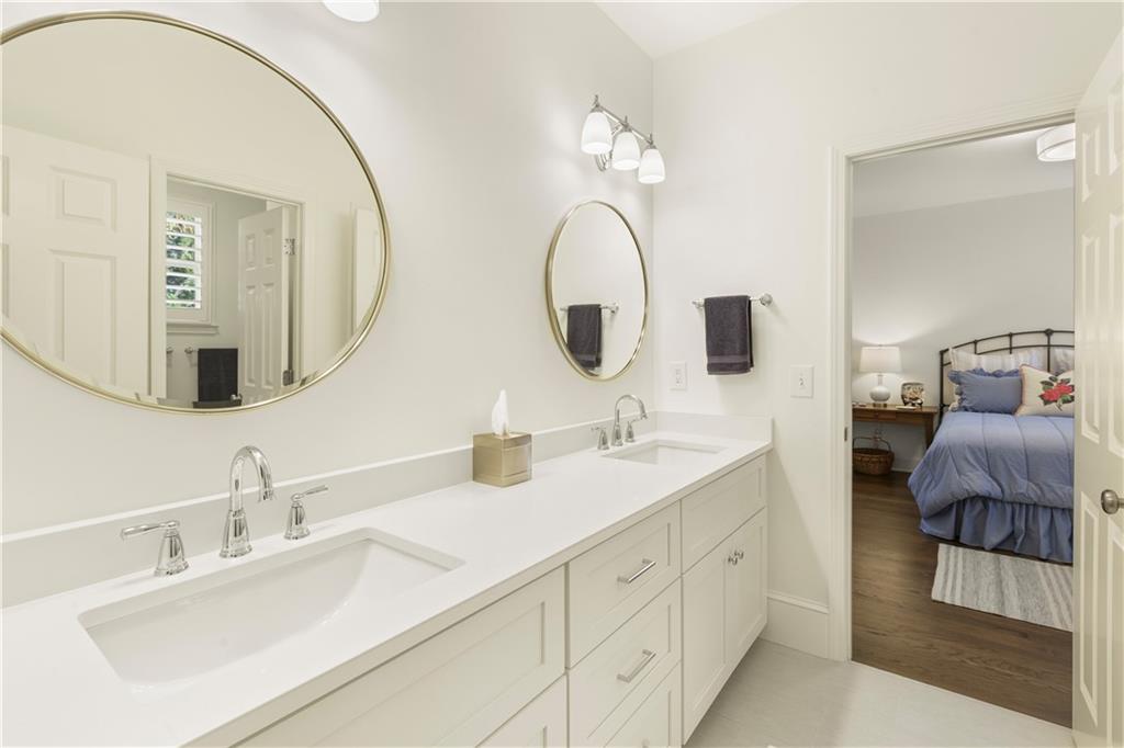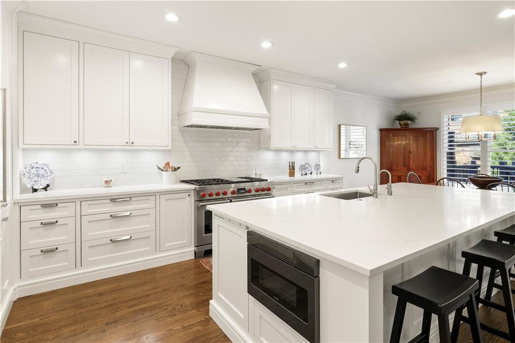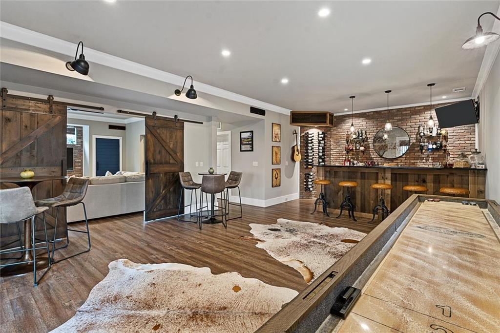 A RARE OPPORTUNITY!! Schedule a showing before it sells! This gorgeous home has been completely renovated! Over 200k in updates in late 2022 and 2023 including the kitchen, primary bedroom/bath, secondary bathrooms, new upper hardwoods (including staircase), new staircase balusters, 4.5 inch plantation shutters, new light fixtures, ceiling fans and hardware plus fresh neutral paint through-out! Impeccable and neutral design details in every room. You'll discover numerous barn doors, charming brick feature walls and flooring along with many other delights! The custom kitchen features 48 inch Housley cabinets (to the ceiling), a 10 foot quartz island, and high-end appliances such as a 6 burner 48" Wolf oven with griddle, a Miele refrigerator and dishwasher and a Sharpe drawer microwave. The family room is filled with bright sunlight, built-in cabinets surround the gas fireplace and you can't miss the stunning coffered ceiling! The home office could also serve as the perfect dining room for entertaining. There are four spacious bedrooms on the upper level (all feature brand new hardwoods) and three offer walk-in closets. The primary bedroom includes separate his/hers closets and a gorgeous, updated bathroom including a custom enlarged shower (with new Italian tiles and penny tile flooring) and an enlarged water closet as well as new tile flooring. The laundry room is also conveniently located upstairs and has been updated with custom cabinets and new tile flooring. The sunlight filled lower level includes two sets of French doors leading to a back patio and fenced backyard. You'll also discover a possible 5th bedroom or media room and a large wet bar perfect for entertaining, a full bathroom and a storage area. This home is conveniently located near Avalon, Halycon, downtown Alpharetta, GA 400 and many other great restaurants, parks and shopping! Located in a sought-after neighborhood with award winning schools and just steps to the 109-acre Webb Bridge Park!