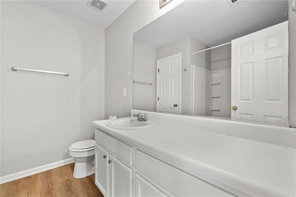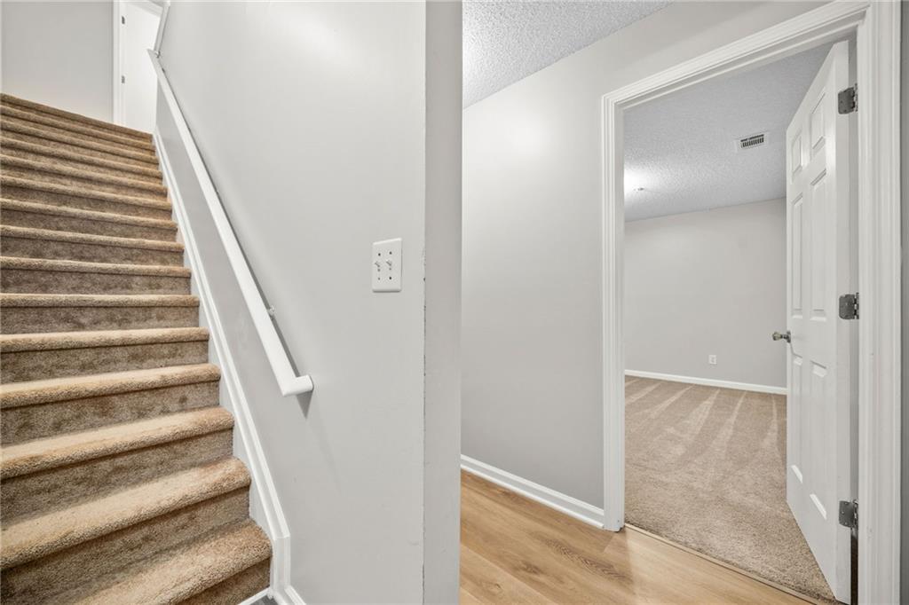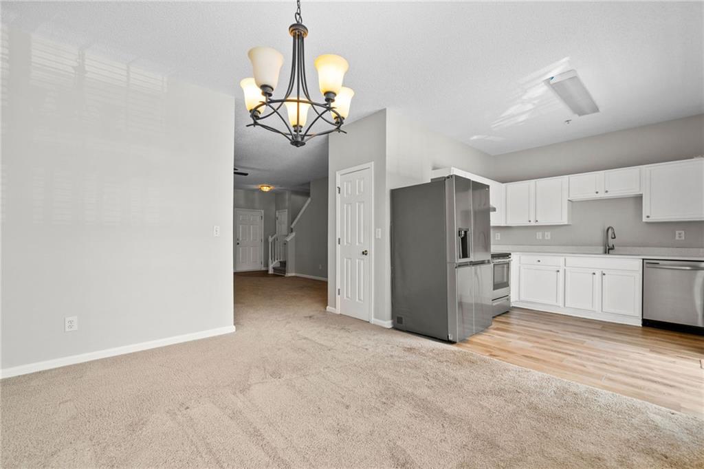 Tri-level townhome in charming Woodstock! Second-story main level with rear deck off the kitchen. Brand new stainless appliances. Third level owner's suite with large walk-in closet and ensuite bath with oversized tub/ shower combo. 2 additional bedrooms, full bath and laundry upstairs as well. Finished room in basement would make a great home office, gym, media room, etc... Neutral paint throughout. Located down the street from The Outlet Shoppes at Atlanta and a host of other shopping and dining options, as well as parks, and walking and biking trails. Very close access to I-575 and just a short drive to charming Downtown Woodstock.