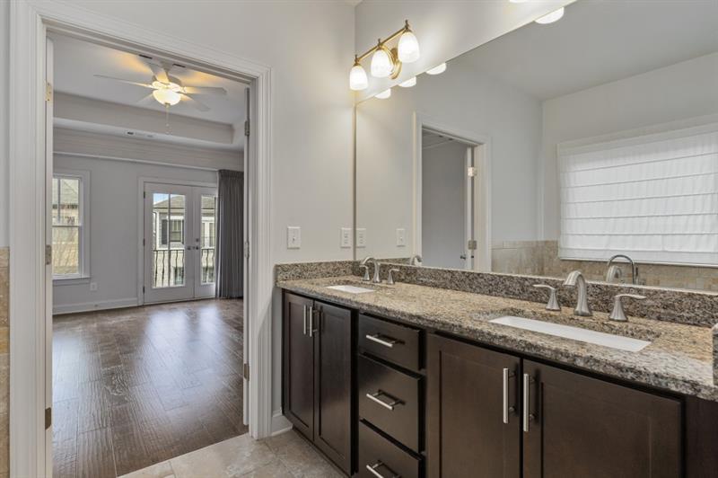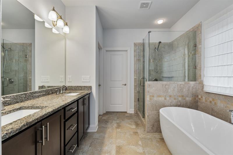 This stunning home offers the perfect blend of convenience and tranquility. Nestled on a quiet cul-de-sac, you'll enjoy peace and privacy while being just moments away from highway access, shopping, and dining. Step inside and discover three levels of spacious living. The main level boasts a bright, open floorplan, perfect for entertaining and everyday living. The kitchen seamlessly flows into the dining and living areas, creating a warm and inviting atmosphere. Upstairs, you'll find the spacious primary suite with his and her walk in closets, double vanities, soaking tub and separate shower. Two additional bedrooms and a full bathroom complete the upper level. The terrace level offers even more living space, an additional bedroom and full bathroom. This versatile space is ideal for guests, a home office, or a recreation room. You'll find plenty of upgrades in the his home including hardwood floors throughout and designer light fixtures. Water is included in the monthly rent.