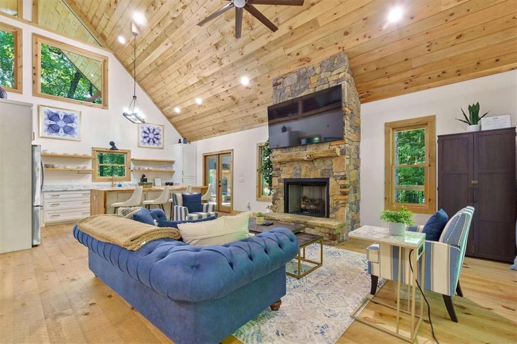 This exquisite, fully furnished, newer construction cabin with an EV Charger (Tesla adapter) is located in the beautiful North Ga mtns and offers everything you need for a weekend getaway, a short-term rental investment or to live full time. This stunning cabin is rustic with a modern appeal with gorgeous cathedral ceilings, an open floor plan, and a stunning stone fireplace. The inside fireplace features gas logs and the outside fireplace is wood burning. This cabin features three bedrooms, plus an additional sleeping loft, two baths, and a fully finished terrace level with stained concrete flooring! The circular sawn hardwood flooring and walls, adds to the rustic feel and has leathered granite countertops throughout. Short-term rentals are allowed in the community, vacation owners or be amongst the full time owners, either way, you will love all the amazing neighbors! Come relax in your brand new hot tub or sit by the fire at the newly built fire pit area that was professionally built with exquisite stone work. The property sits on a 1.61 acre lot with a community pond within walking distance. Close to the Ocoee River, where there are many hiking and mtn biking trails and white water rafting! Only 18 mins to downtown Blue Ridge, 7 mins to downtown McCaysville's Riverwalk shops and restaurants, 25 mins to Murphy, NC (Harrah's Cherokee Valley River Casino), 15 min drive to Mercier Orchards and a quick 2 min drive to Folk Collaborative Orchard/store/cafe, this location has it all!! Roads in the community are PAVED! Sellers will contribute $5,000 towards Buyer's closing costs.