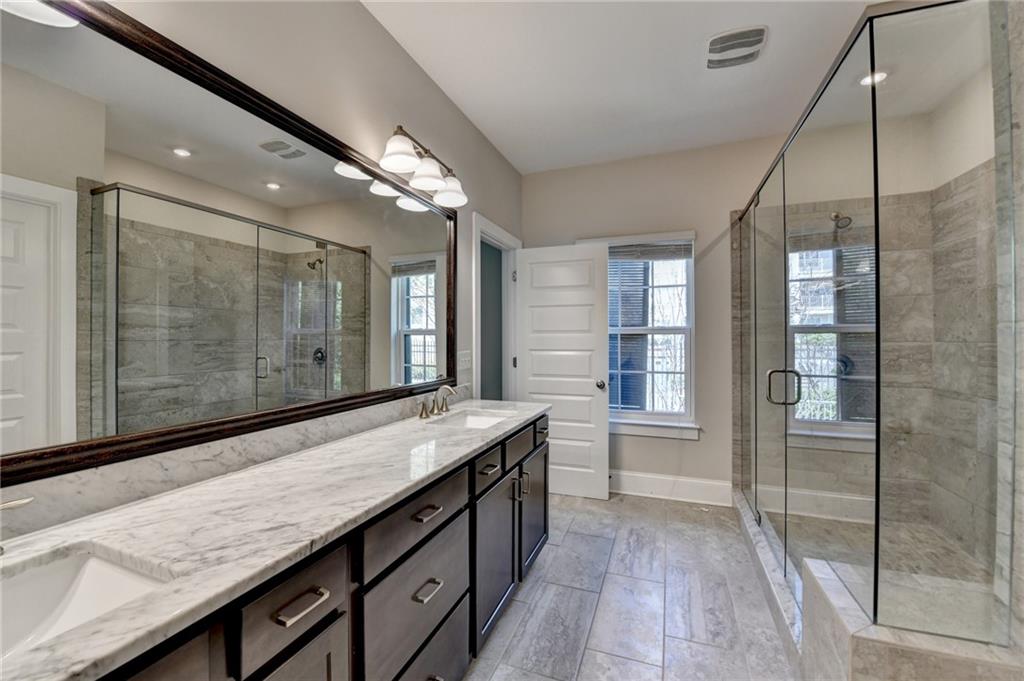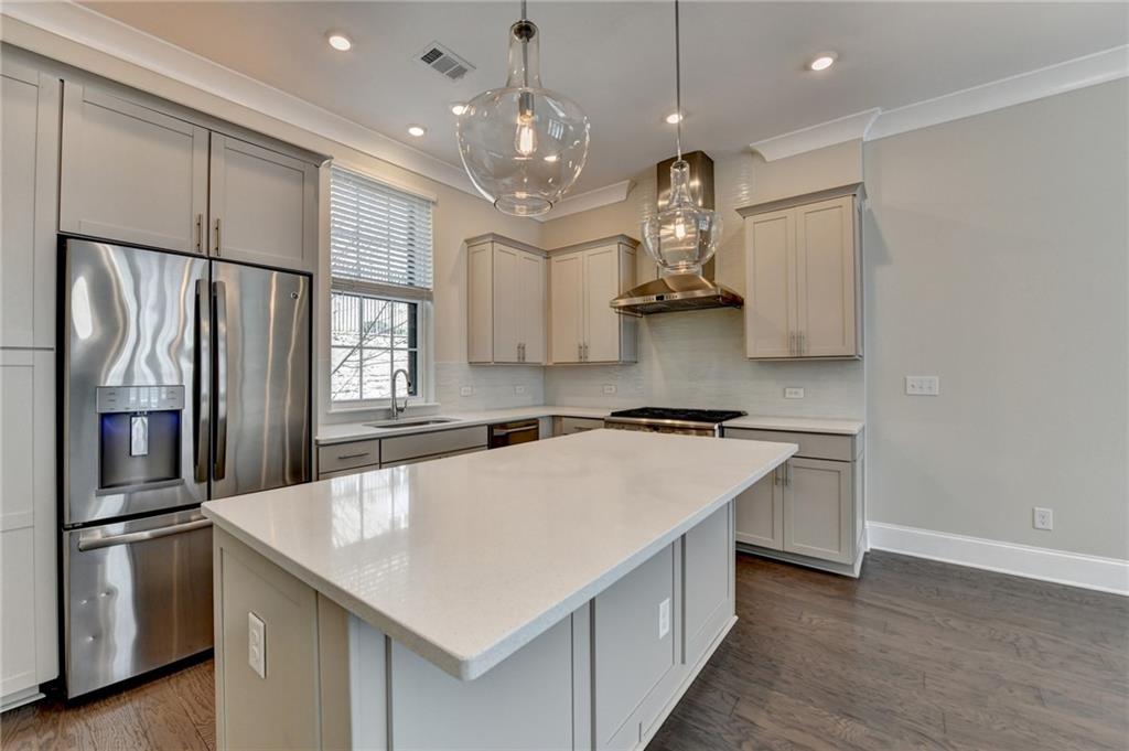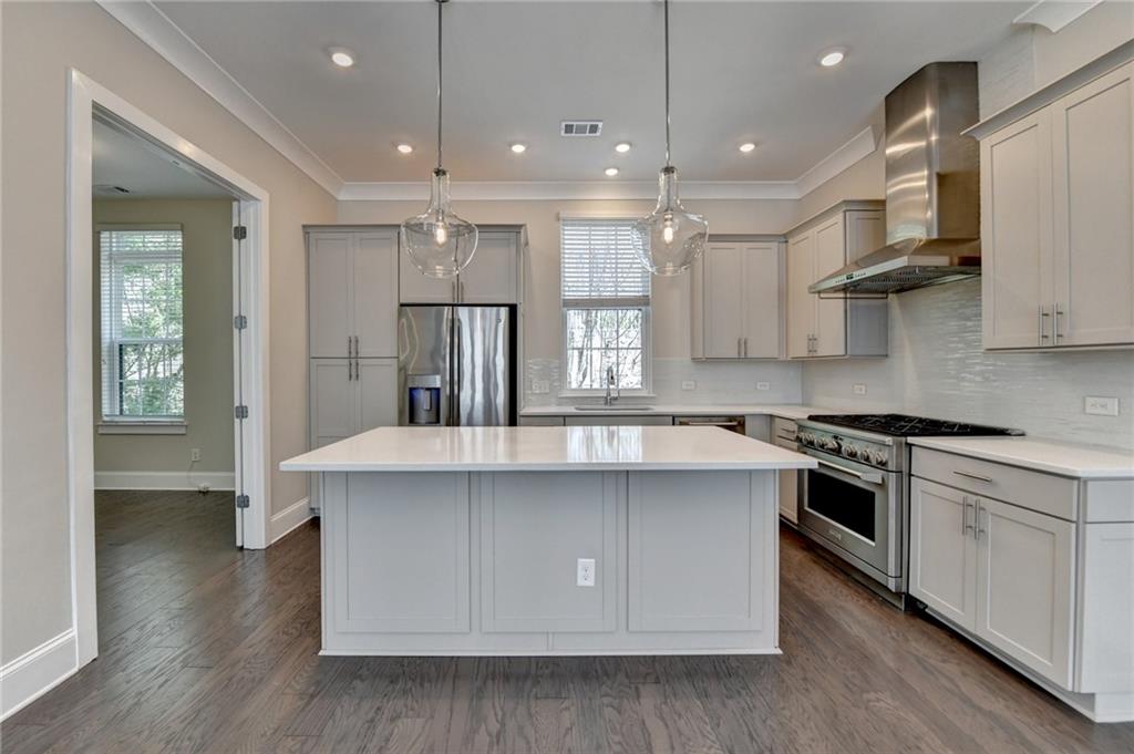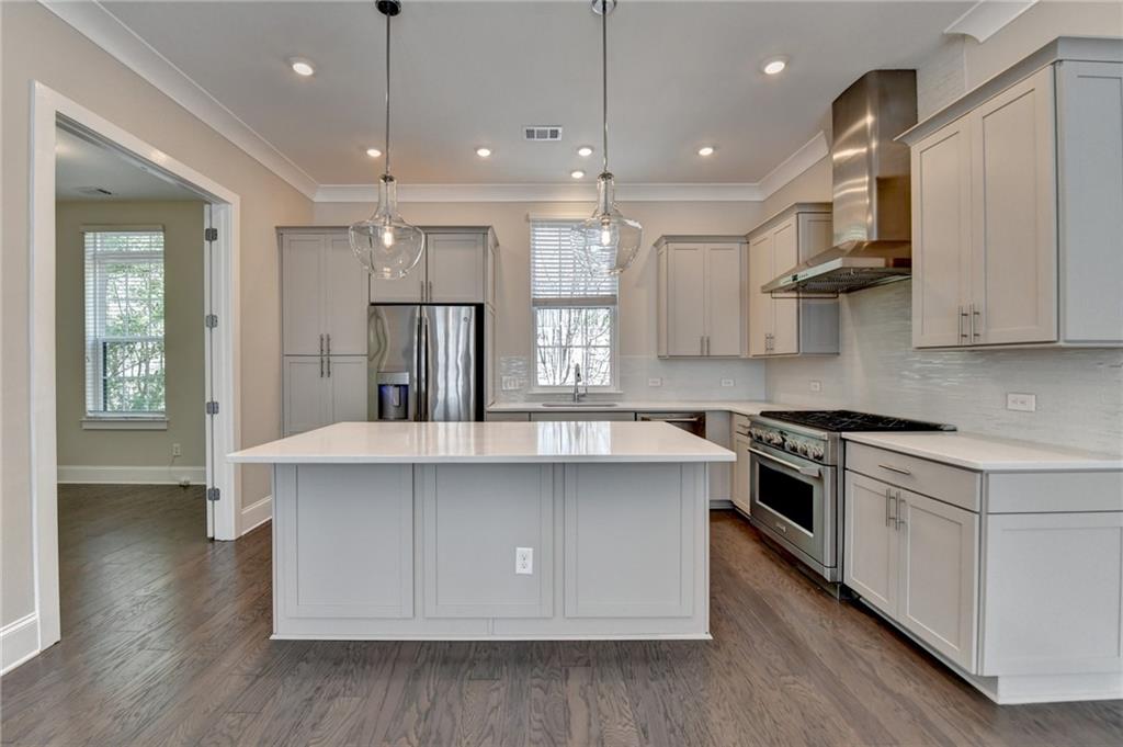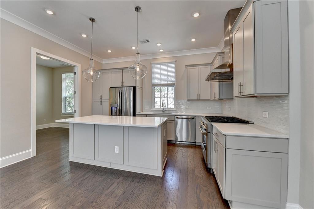 Welcome to this stunning and elegant residence, formerly the community's model home, perfectly situated in the vibrant heart of Buckhead. This exquisite 3-story “Aviana” floorplan offers three spacious bedrooms and three full bathrooms, combining luxury, comfort, and convenience in one sophisticated package. Designed with an open-concept layout, the home features 10-foot ceilings, large windows, and gleaming hardwood floors throughout the three levels. These fill the space with natural light and create an airy, upscale ambiance. The gourmet kitchen is a chef’s dream, complete with GE Monogram stainless steel appliances, a 36-inch range with hood, granite countertops, and ample cabinetry—ideal for daily living and entertaining. The top-floor covered patio offers a serene space to unwind, while the spacious primary suite is a luxurious retreat. It features dual walk-in closets, double vanities, a stand-alone soaking tub, and a separate walk-in shower. Additional bedrooms on the terrace and main floors offer versatility—perfect for guests, a home office, or a growing family. Enjoy premier urban living just minutes from Lindbergh MARTA Station, Kroger, Target, Home Depot, and many dining and shopping options. With easy access to I-75 and I-85, commuting is a breeze. Steps away from PATH 400, a scenic 5.2-mile multi-use trail connecting all of Buckhead to its world-class retail, dining, and financial districts.