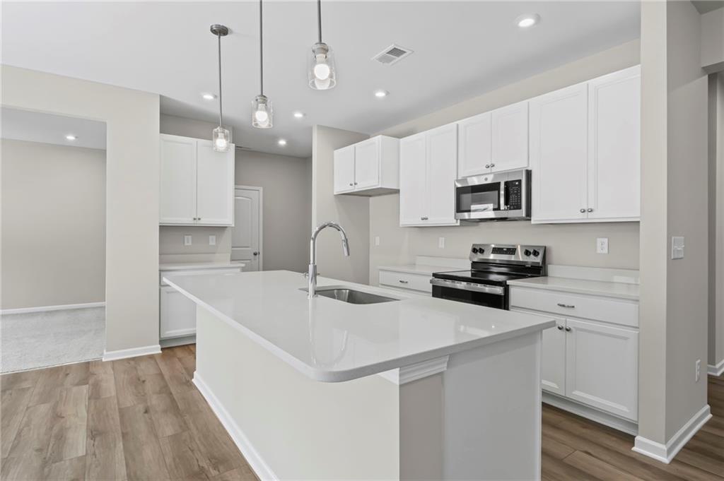 - KitchenBreakfast Bar, Breakfast Room, Kitchen Island, Pantry, Pantry Walk-In, Solid Surface Counters