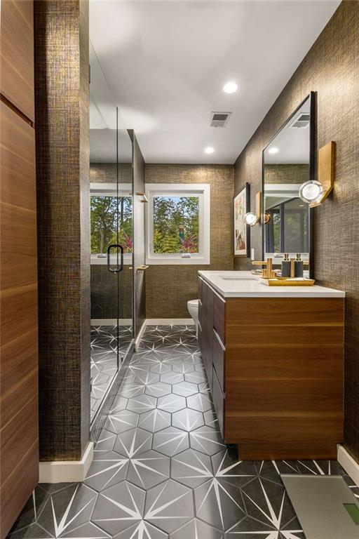 Architecturally designed this Mid Century renovation creates the perfect opportunity for beautiful living. This home is a dream come true with every detail, finish and feature you can imagine. Interior design excellence is noted! You can tell the home is special once you arrive. Breathtaking landscaped motor court welcome you and your guest. The front entry is so nice nd leads to a covered front porch and beautiful iron double doors that open into a large foyer. Living room with fireplace is filled with natural light from floor to ceiling windows. The large dining room is open to the gourmet cooks kitchen, Custom cabinetry, designer tiles and lighting fixtures set the stage for great dinner parties and family gatherings. A large glass slider opens interior spaces to a large screened porch that overlooks a true botanical garden for a backyard. The owners suite on the main level provides a private shower bath with designer tiles and fixture, custom cabinetry and vanity storage. The owners closet is large with custom shelving systems for all your wardrobe. The secondary bedroom on the main level over looks the beautiful backyard. The hall bath provides a large walk-n shower with frameless glass enclosure, custom fixtures, lighting, designer hardware, and custom vanity with storage. The terrace level is light filled from windows on three sides. A large media room with fireplace offers relaxation space. Large sliding glass doors open to a large deck for outdoor dining and entertaining. Two additional bedrooms on the terrace level also have very generous closet space. There is a large laundry room and two additional storage rooms. So much space! The gated and fenced backyard creates a peaceful retreat in the heart of in town living. Stone pathways and terraces offer areas for contemplation and outdoor enjoyment. Koi ponds with water features create a Zen effect. Lush landscaped gardens will amaze you... night lighting extends the enjoyment. The CDC, Emory Hospital. Children's Hospital, Emory Sports Medicine, Life Time Fitness, Buckhead, Druid Hills, Moriningside, VA HI, Midtown, and major interstate connectivity! are minutes away. Shopping, dining, entertainment and Atlanta Beltline connectivity too!