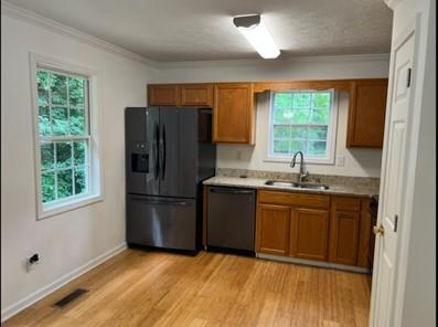 Well Maintained and Updated, Three Bedroom and Two Bathroom Home! Great neutral colors throughout! Open great room with a wood burning fireplace, great for those cold winter nights, featuring rock accents , plus crown molding, ceramic tile in bathrooms, home has hardwood floors throughout! Large Eat-In Dining room style kitchen with Granite Countertops, Undermount Sink and SS Appliance Package which includes a Smooth Top Stove and a Built-In Style Microwave Vent Hood. Oversized Back deck and overlooks the private and wooded Back Yard! The main level Bedrooms also feature all Hardwood Flooring and Neutral color plus crown molding! Partially Finished Basement with Sheetrock, Hardwood Floors, Painted Ceiling, and also features a Bath Stub for a Future Third Bath! Nice Size Two Car Garage offer room for extra storage! **listing agent is related to seller**