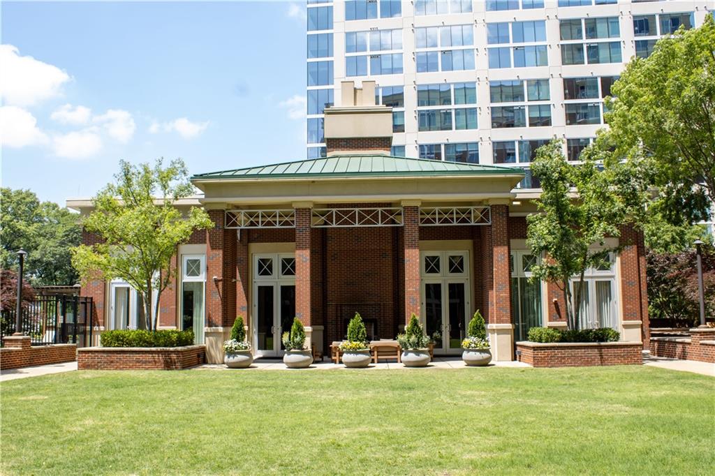 One of only 6 terrace homes, with your own outdoor garden. This home offers an open concept floor plan and has direct access to resort-style amenities—pool, dog park, grilling area, and more. This 2BR + Den / 2.5BA corner unit features 1,500+ sqft of light-filled living with floor-to-ceiling windows, 10’+ ceilings, wide-plank hardwoods, and designer upgrades throughout. The chef’s kitchen boasts Viking appliances, granite counters, wine chiller, and built-in coffee maker. The spacious primary suite includes direct patio access, a walk-in closet, and spa-style bath. The secondary bedroom features an en-suite marble bath, and the flexible den works perfectly as an office or guest space. There are two guest suites available for overnight guests, as well as, two assigned parking spaces come with the unit. Located between Midtown and Buckhead, The Brookwood offers 24-hour concierge, saltwater pool, fitness center, guest suites, and more—just steps from the Beltline, MARTA, and top dining. Don't miss out on this rare opportunity!