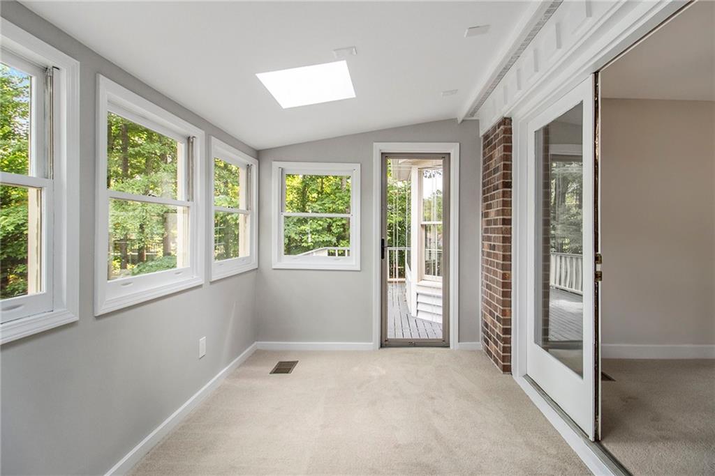 Welcome to 1505 September Chase, a spacious, rare END unit featuring a main-level primary suite with a private sunroom that opens to a deck overlooking mature trees—perfect for morning coffee or relaxing evenings - in the sought-after, well-maintained September Chase community. The updated kitchen (May 2025) includes LVP flooring, white soft-close cabinets, granite counter, new single-bowl stainless sink and faucet, newer stainless steel appliances, updated lighting, and a sunny and bright breakfast area. The dining and living areas are thoughtfully separated by a cozy gas fireplace, ideal for both everyday living and entertaining. Upstairs, you’ll find two large bedrooms, a versatile office/flex room, and ample closet space. A main-level powder room adds convenience, while the oversized 2-car garage and half basement provide excellent storage or room to expand. Newly insulated attic (2025), 2022 roof, 2021 main level HVAC, 2023 water heater! Tucked next door to the Sagamore Hills community and located just minutes from Toco Hills, Emory, CDC, CHOA, and downtown Decatur, it is a short walk to Oak Grove Village with local shops, dining, and more. Don't miss this one! *NO BLIND OFFERS*
