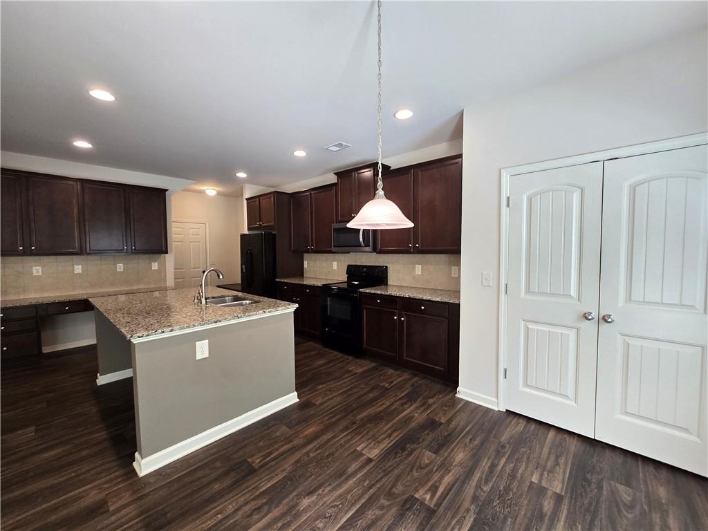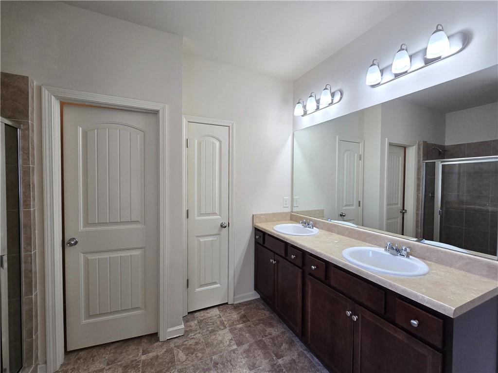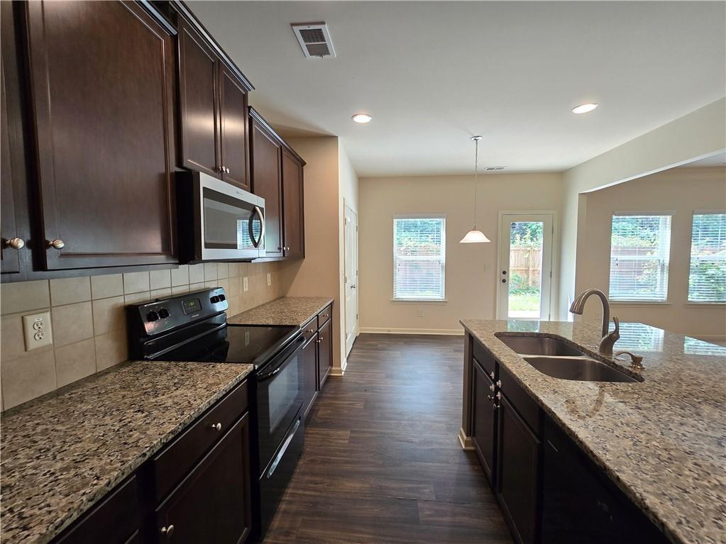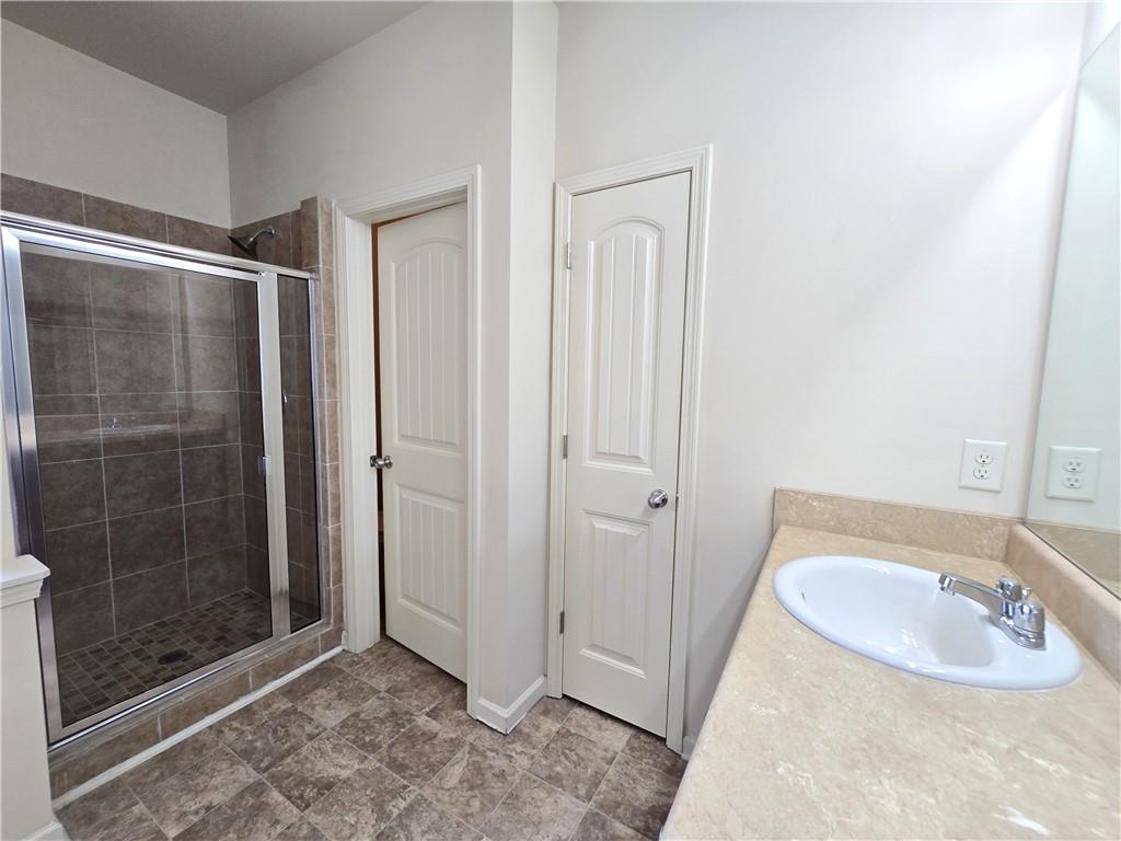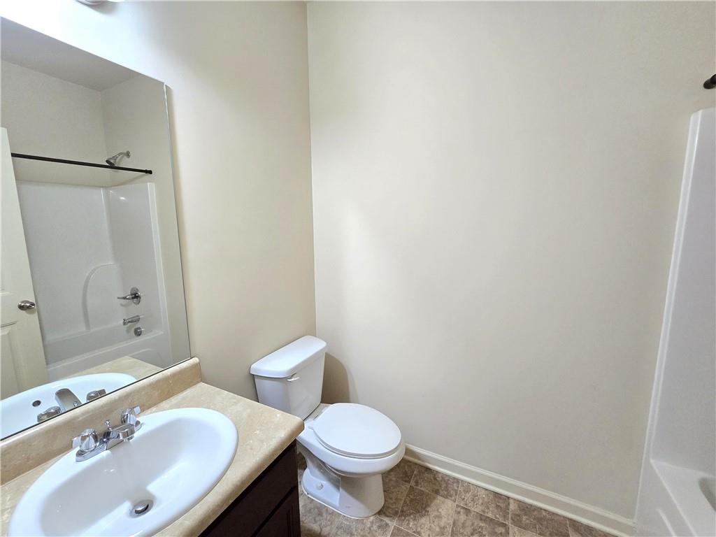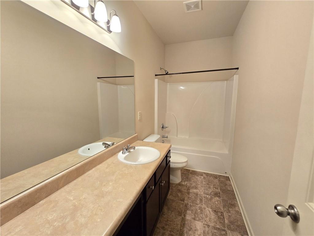 Beautiful move-in ready home conveniently located near schools, shops, parks, I-85, and Hwy 53. Two-story home features an open concept floor plan on the main level and all bedrooms located on the upper level. From the welcoming foyer, the dining room is on the right and just adjacent to it is a full bathroom and coat closet. Gorgeous Kitchen with large island, stone counters, and pantry closets opens up to the Family Room and Breakfast Nook/Dining Area. Upper level features a large Master Suite with an ensuite bathroom with a separate tub and shower, walk-in closet, and double vanities. Three secondary bedrooms, a shared bathroom, and Laundry Room are also located on the upper level. Privately fenced and leveled backyard and enjoy community amenities at Creekside Village including a clubhouse and pool! Minimum credit score of 650.