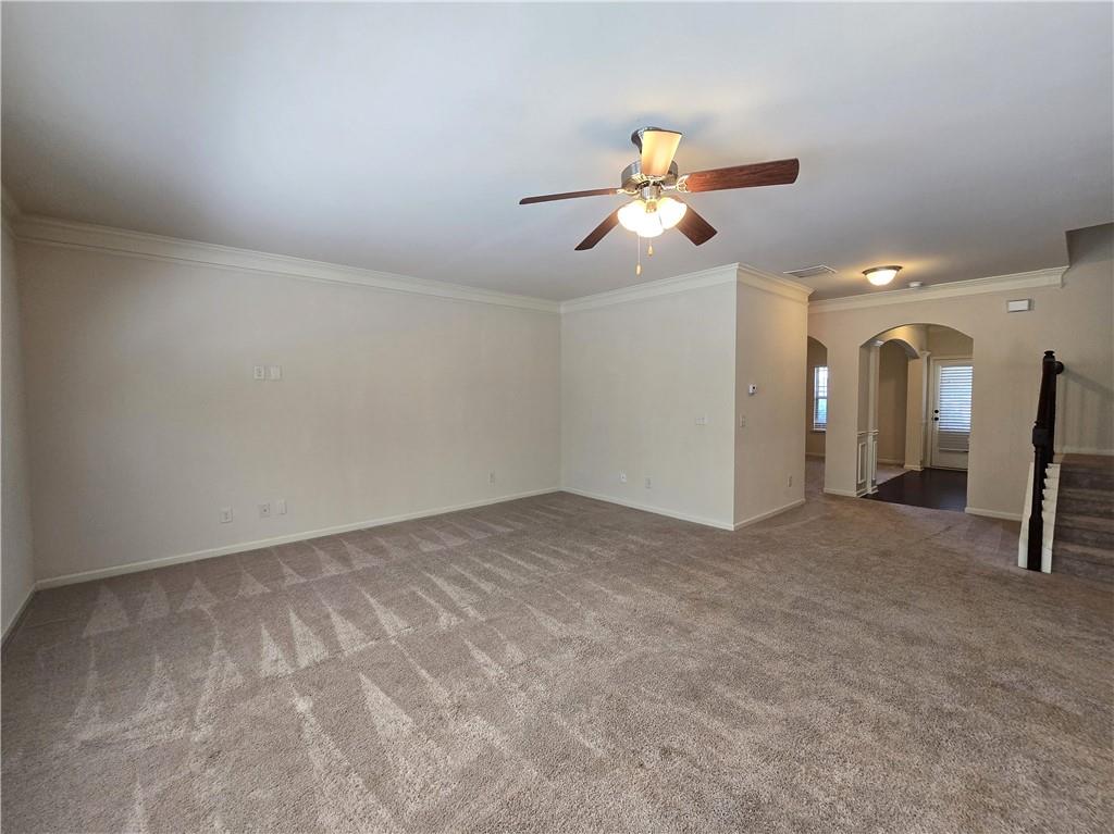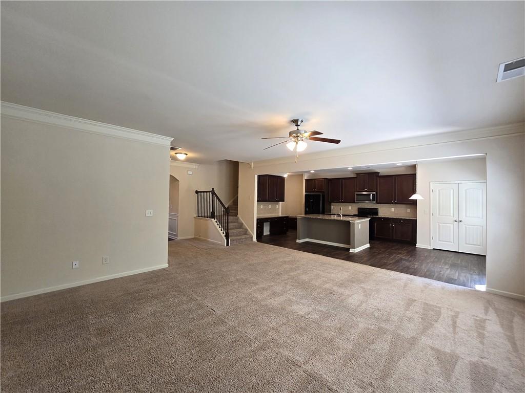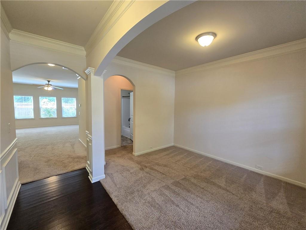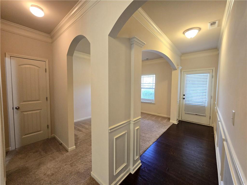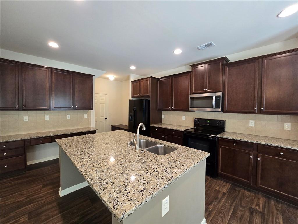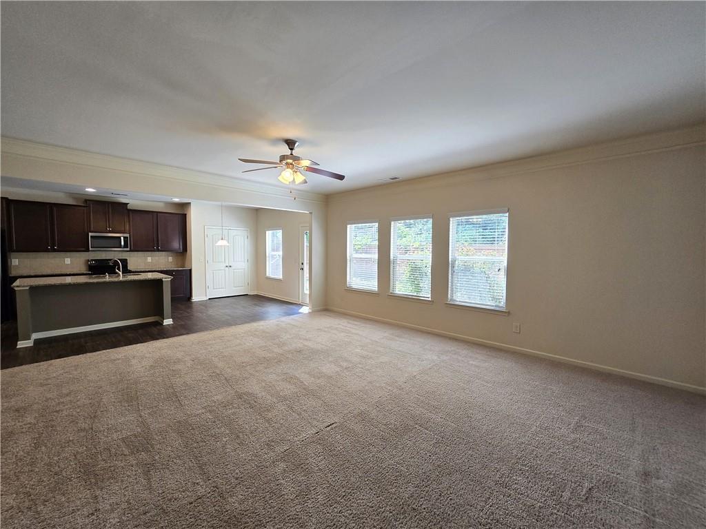 Beautiful move-in ready home conveniently located near schools, shops, parks, I-85, and Hwy 53. Two-story home features an open concept floor plan on the main level and all bedrooms located on the upper level. From the welcoming foyer, the dining room is on the right and just adjacent to it is a full bathroom and coat closet. Gorgeous Kitchen with large island, stone counters, and pantry closets opens up to the Family Room and Breakfast Nook/Dining Area. Upper level features a large Master Suite with an ensuite bathroom with a separate tub and shower, walk-in closet, and double vanities. Three secondary bedrooms, a shared bathroom, and Laundry Room are also located on the upper level. Privately fenced and leveled backyard and enjoy community amenities at Creekside Village including a clubhouse and pool! Minimum credit score of 650.