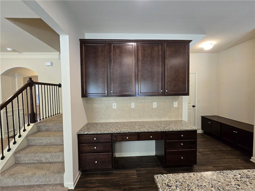 - KitchenBreakfast Bar, Breakfast Room, Cabinets Stain, Eat-in Kitchen, Pantry, Stone Counters, View to Family Room