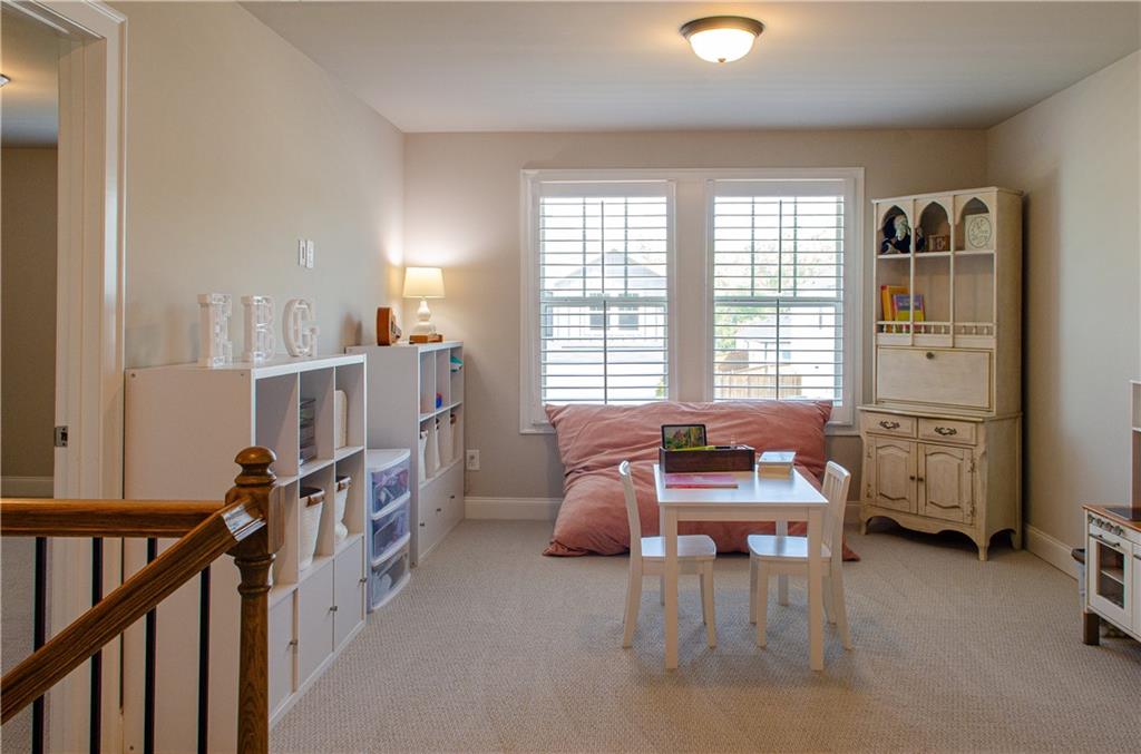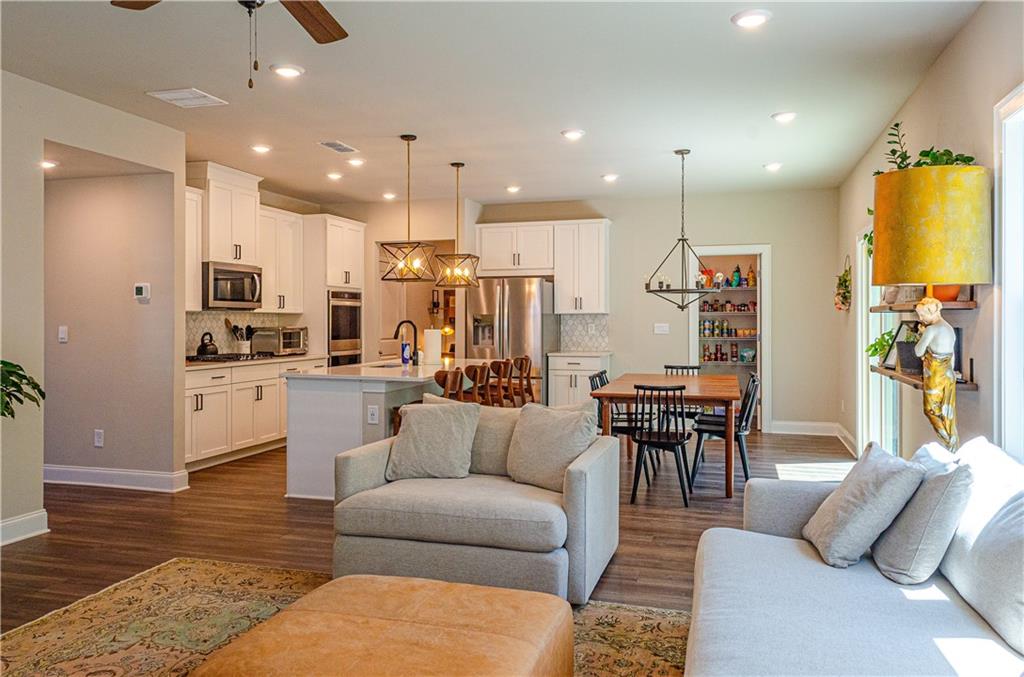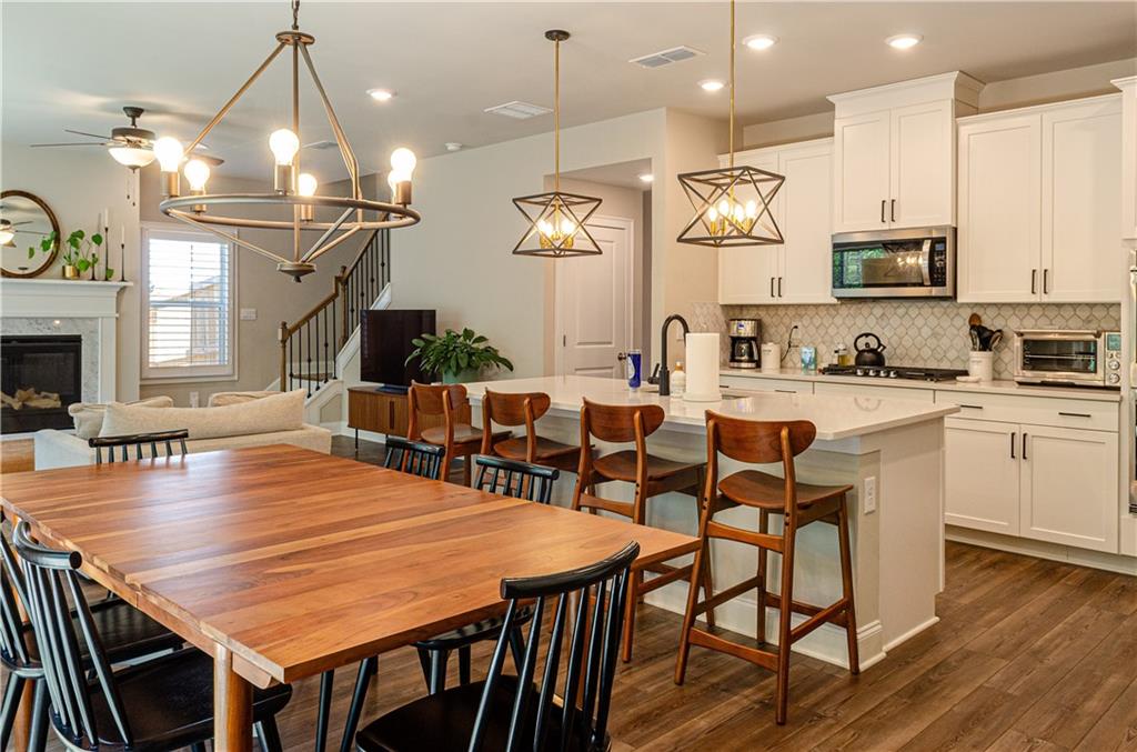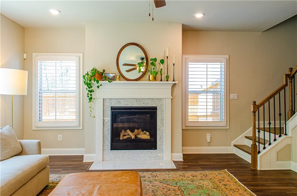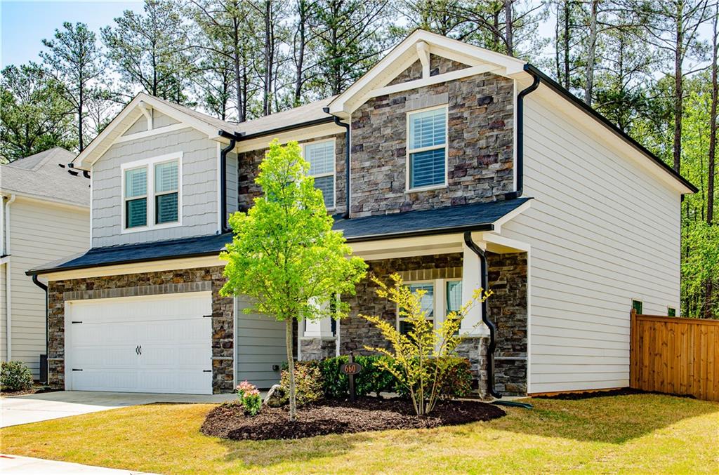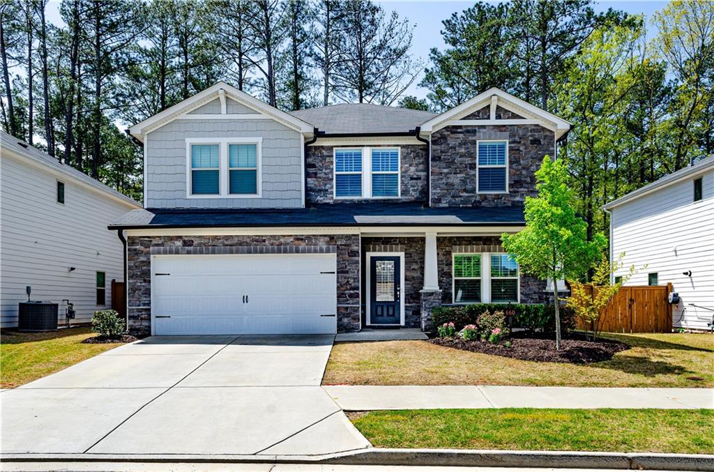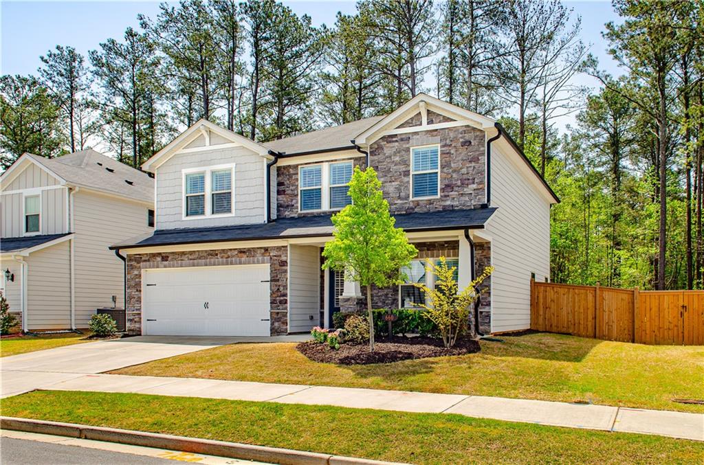 Welcome to this beautifully maintained, move-in ready home in the heart of Woodstock, featuring charming Craftsman-style details and a striking stone-front exterior. Enjoy the professionally landscaped front yard and relax on the inviting covered porch, perfect for morning coffee or an evening glass of wine. Step inside to an open, light-filled layout designed for modern living. Just off the foyer, a versatile flex room offers endless possibilities as a formal dining room, home office, or cozy den. The gourmet kitchen is a chef’s dream, boasting soft-close cabinetry, sleek quartz countertops, a designer tile backsplash, gas cooktop, double wall ovens, stainless steel appliances, a spacious pantry, and a large island with breakfast bar seating. Recessed lighting and beautiful, durable, easy to maintain LVP flooring throughout the main level, a gas fireplace with an elegant marble surround, and plantation shutters elevate the space with warmth and sophistication. Upstairs, a spacious loft offers flexible living space, alongside four generously sized bedrooms all with new carpeting. The luxurious primary suite features a large walk-in closet and a spa-inspired ensuite bath with double vanity, quartz countertops, a separate soaking tub, and a tiled shower. The level, fenced backyard backs up to Army Corp of Engineers property giving you lots of privacy and views of the woods. Neighborhood amenities include a swimming pool, pool house, playground, sidewalks throughout, and a green space for outdoor sports, HOA seasonal events and neighborhood gatherings. Located in a highly sought-after neighborhood served by top-rated Woodstock schools, this home also offers easy access to the vibrant historic downtown district. Enjoy a variety of boutique shops, one-of-a-kind restaurants, entertainment options, and cultural experiences, including a summer concert series, the acclaimed Woodstock Arts Theatre, and a popular farmers market. Outdoor enthusiasts will love the nearby parks, trails, and natural areas for year-round recreation. No smoking allowed. Dogs allowed subject to approval and $300 non-refundable pet fee. Owner is a licensed real estate agent.