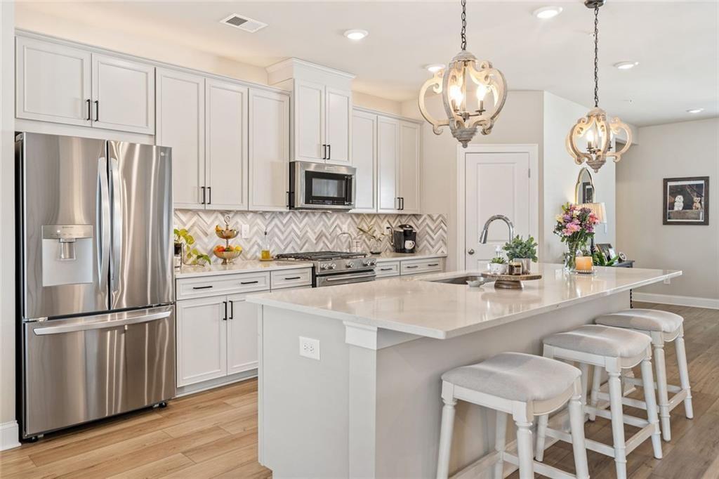 Location, Location, Location! Nearly new, meticulously maintained, and lightly lived-in, this stunning townhouse is nestled in the heart of sought-after Woodstock, GA. Enjoy the convenience of walking distance to Costco, dining, and shopping, plus quick access to I-575 and the vibrant downtown Woodstock area—offering endless entertainment, restaurants, and charm. Step inside to find a private entry-level bedroom and full bathroom, ideal for guests or a home office, along with convenient access to the garage. Head upstairs to the spacious main living level featuring an open-concept layout perfect for both relaxing and entertaining. Enjoy your morning coffee or evening sunset on the inviting front balcony. The gourmet kitchen stands out with beautiful, unique cabinetry, a stylish backsplash, and upgraded lighting. There’s ample room for a large dining table in the bright and airy living space. Upstairs, the owner’s suite features a private ensuite bath and two generous walk-in closets upgraded with custom closet systems. This level also includes a laundry closet, two additional bedrooms, and a shared full bath. Ground maintenance, Lawn care, Pool are done by HOA. Don’t miss the opportunity to live in one of Woodstock’s most desirable locations! ONLY accepting 24 month+ lease duration.