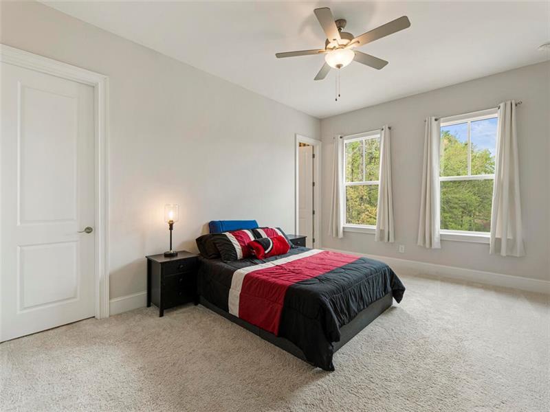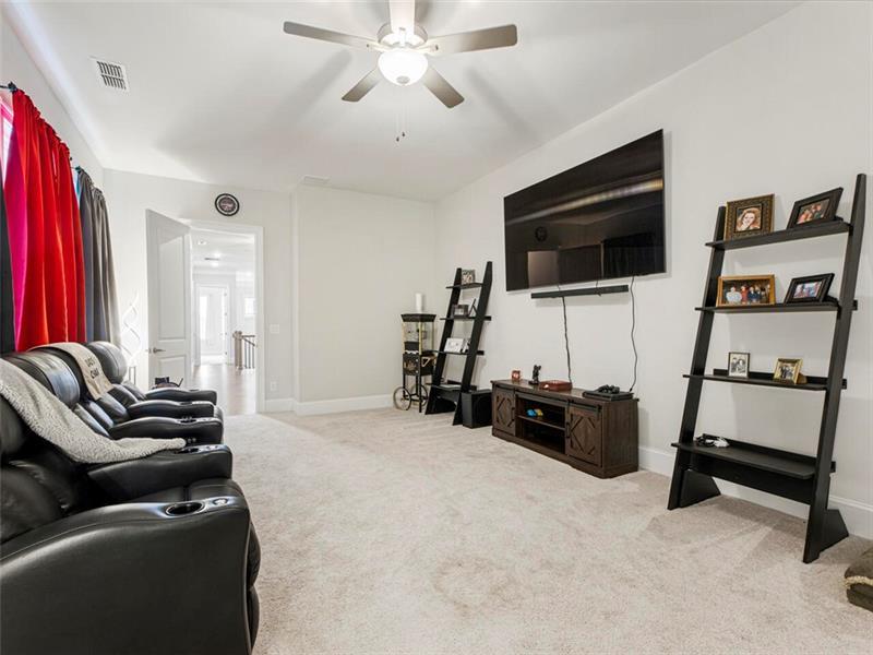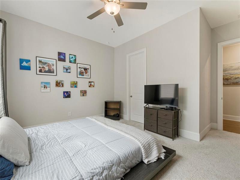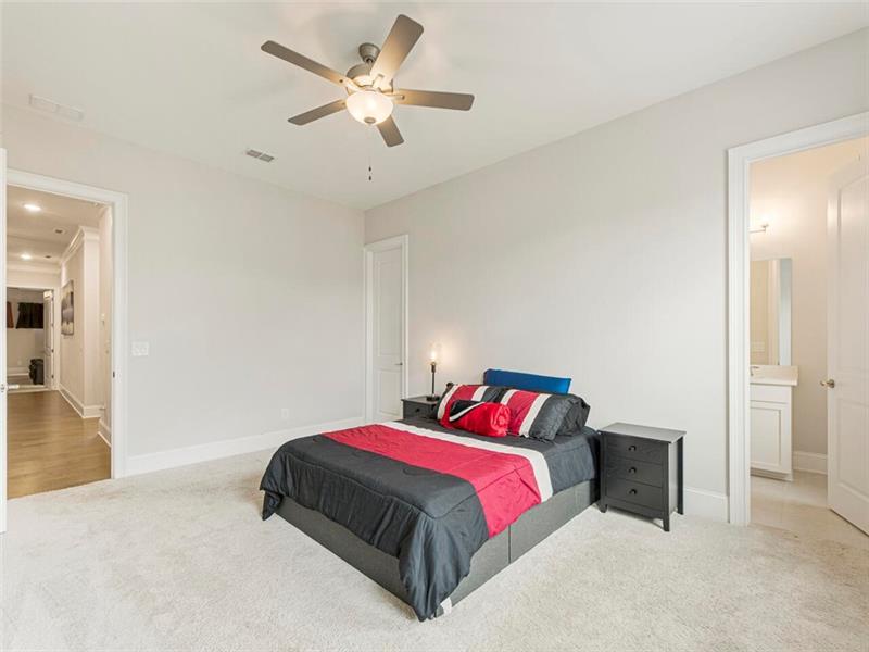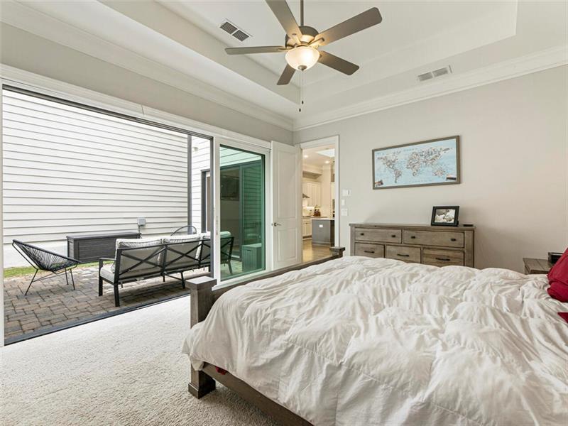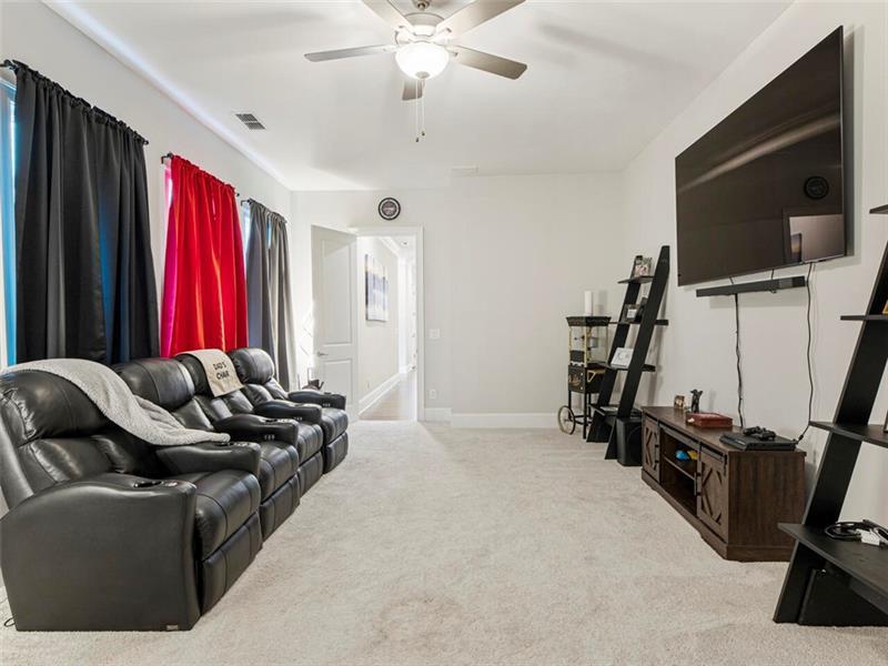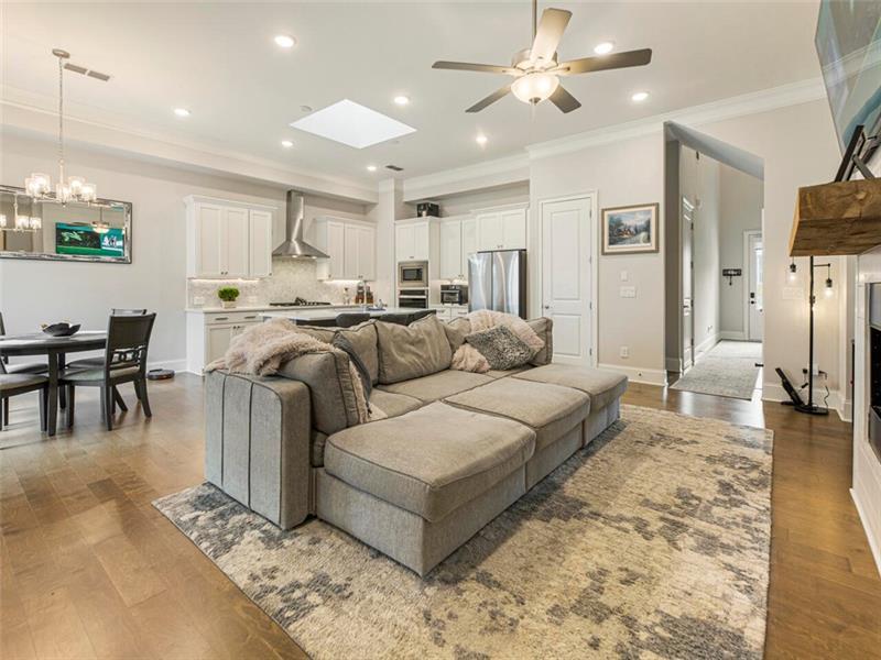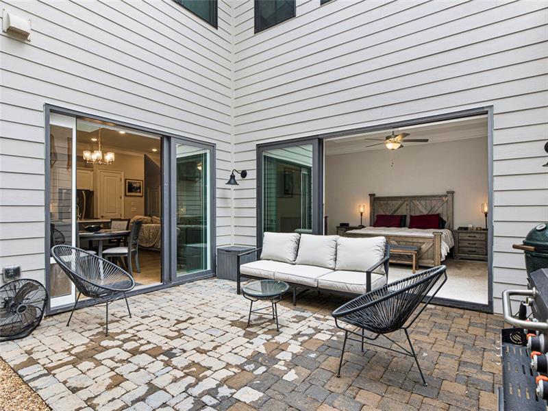 Situated in The Village at Towne Lake, this Seagrove-plan home is only .5+/- miles from Downtown Woodstock and the Woofstock dog park. 4.25% assumable VA loan available. The home includes an abundance of designer upgrades and features throughout. Enter into the two-story foyer, which leads to the incredible living area, which boasts 11-foot ceilings and Shaw weathered engineered hardwood floors. The fireside family room offers built-ins flanking the fireplace and a beamed ceiling with recessed lighting. The open floor plan allows the living room to flow seamlessly into the kitchen and sunlit dining area. The gourmet kitchen impresses with an island with seating, quartz countertops, double-stacked white upper cabinetry contrasted with warm wooden cabinets below, a 48-inch vent hood, a marble tile backsplash and stainless-steel appliances. Two telescoping sliding doors open fully to the courtyard, seamlessly uniting the interior and exterior living spaces. The same style doors open the main-level primary suite, which also connects to the courtyard. The primary suite also includes a luxurious en suite bathroom with dual vanities, an oversized, step-less entry, spa-like shower and a walk-in closet with built-ins and one of two washer and dryer sets. A half bathroom and access to the two-car garage complete the main level. The upstairs commences with a large landing lined with an office or study area and TV-watching area. This level also includes two en suite bedrooms, an oversized bonus room with lots of natural light and a second laundry room with a utility sink and storage options. The gated community of The Village at Towne Lake offers fantastic amenities, including a clubhouse, a fitness center, a large pool, outdoor firepits and an outdoor fireplace, a bocce ball court, two pickleball courts and two dog parks. Take your golf cart to Downtown Woodstock and enjoy the award-winning restaurants, shops and events, all just moments from your front door. Welcome home!
