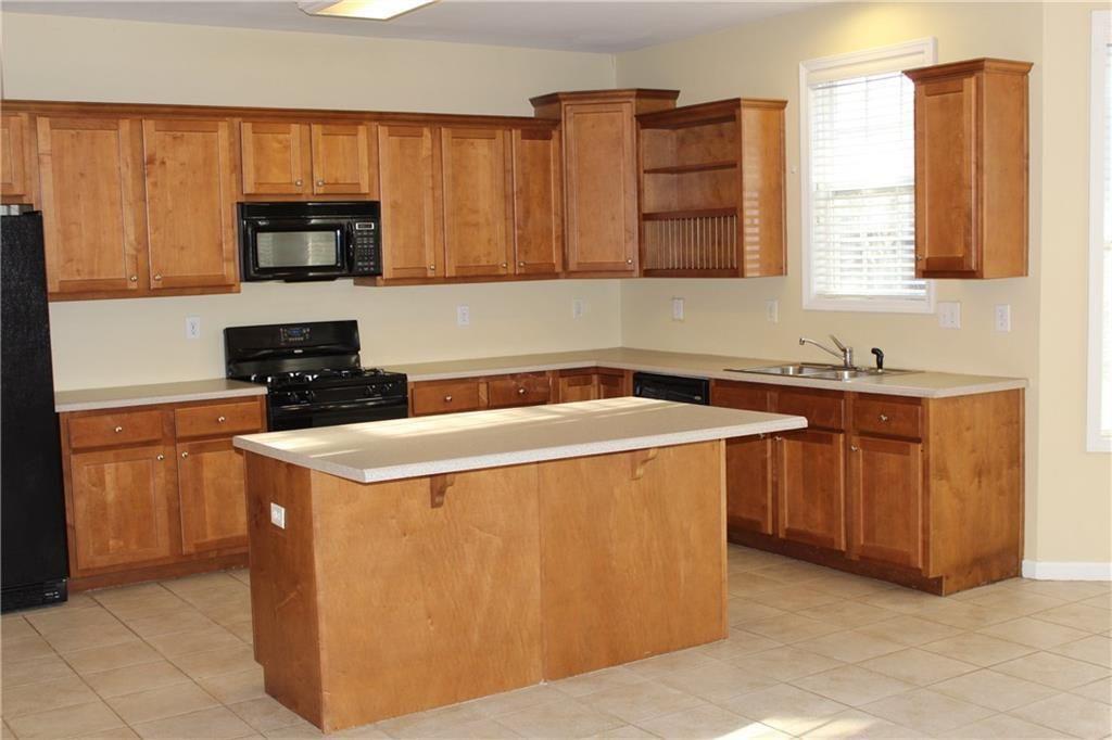 - KitchenBreakfast Bar, Cabinets Stain, Eat-in Kitchen, Kitchen Island, Solid Surface Counters, Pantry, View to Family Room