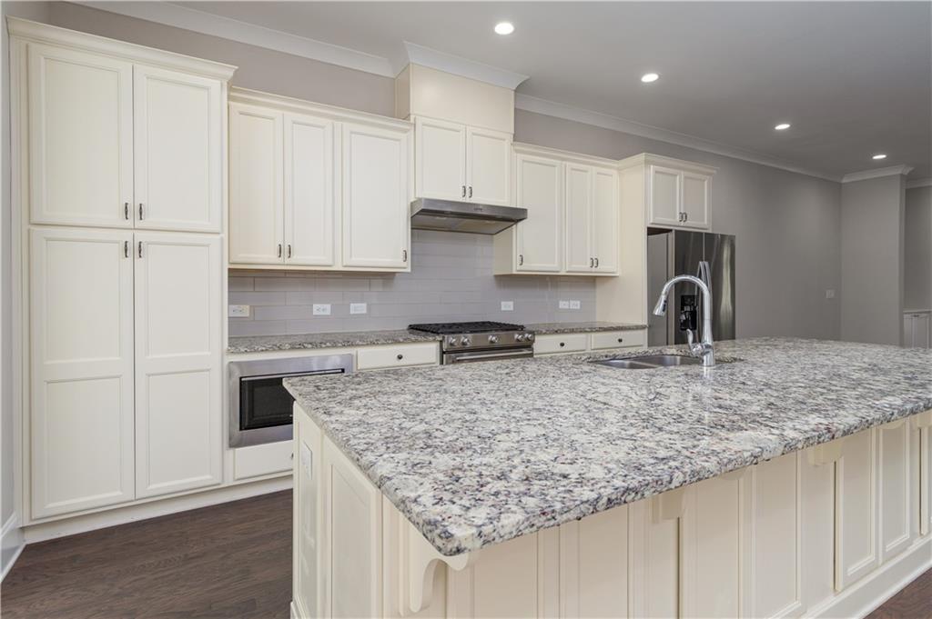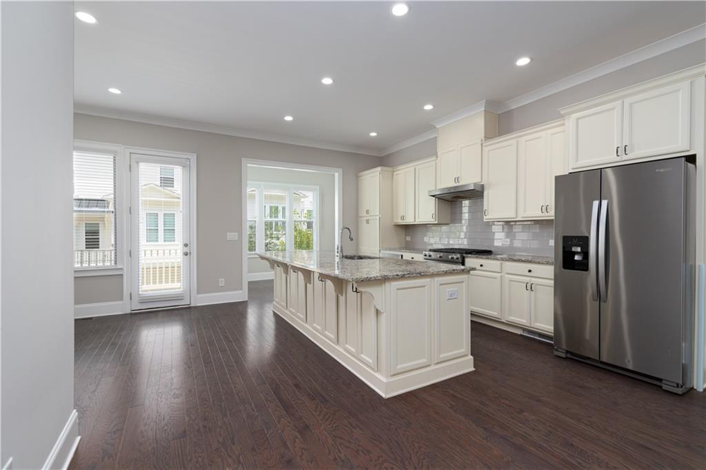- KitchenKitchen Island, Stone Counters, Cabinets White, Pantry Walk-In, View to Family Room, Keeping Room