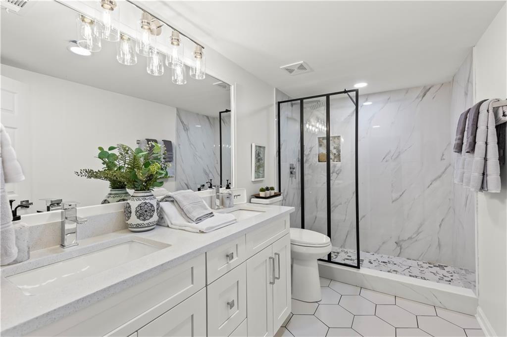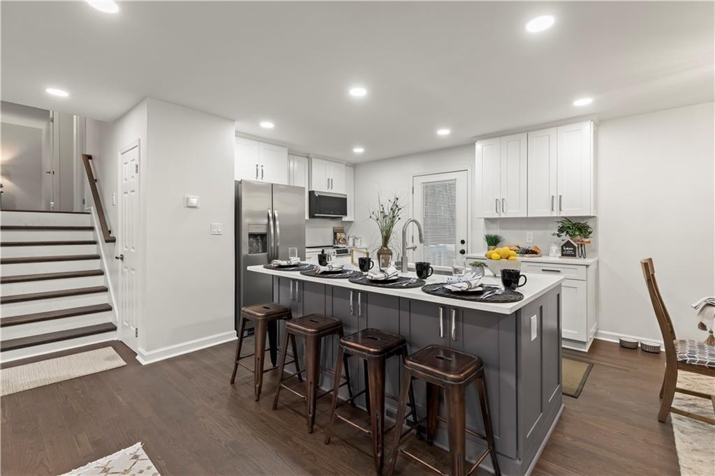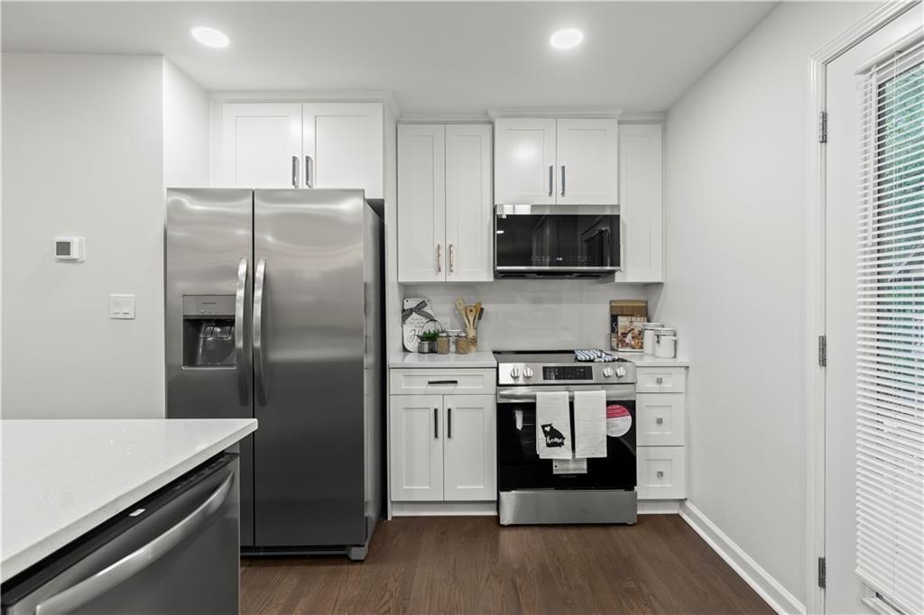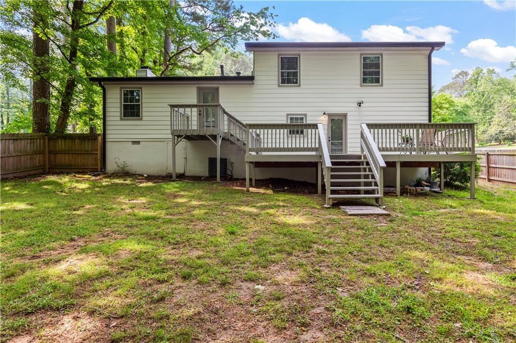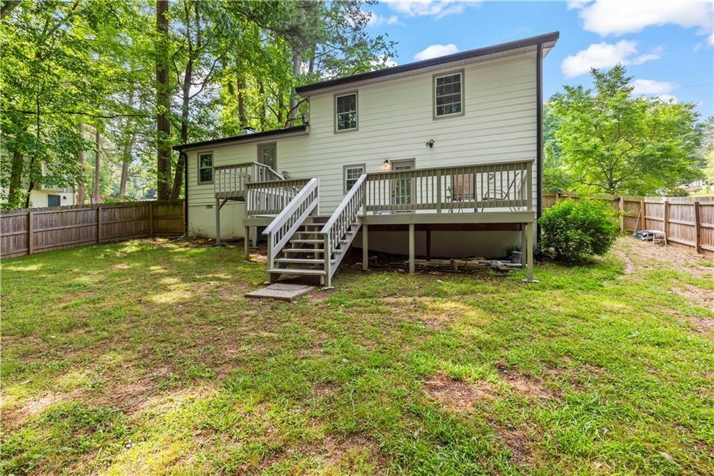 Welcome home to this fully renovated gem in coveted Kell district. Tucked away on a wooded street, this home recently underwent a head-to-toe renovation. Step inside to a beautiful kitchen, including a center island, custom cabinetry and brand new stainless steel appliances. Shiplap fireplace with separate dining room and access to a double decker patio and huge fenced in backyard all off the main living level. Upstairs you'll find three well appointed bedrooms and a renovated hall bath. Lower level features the oversized primary suite with large walk in closet and gorgeous en suite bath with double vanity and walk-in shower. Easy access to lower level deck from primary for easy pet let-out or dining al fresco, morning or night. Additional full bath downstairs, as well as mud room/laundry room that serves as additional entry way. Located on the Marietta/Kennesaw line, this home is conveniently located just minutes to Kennesaw State, Interstate 75, Kroger, Publix, fantastic restaurants and more! Don't miss out on this one-of-a-kind, pet friendly beauty. Schedule your tour today.