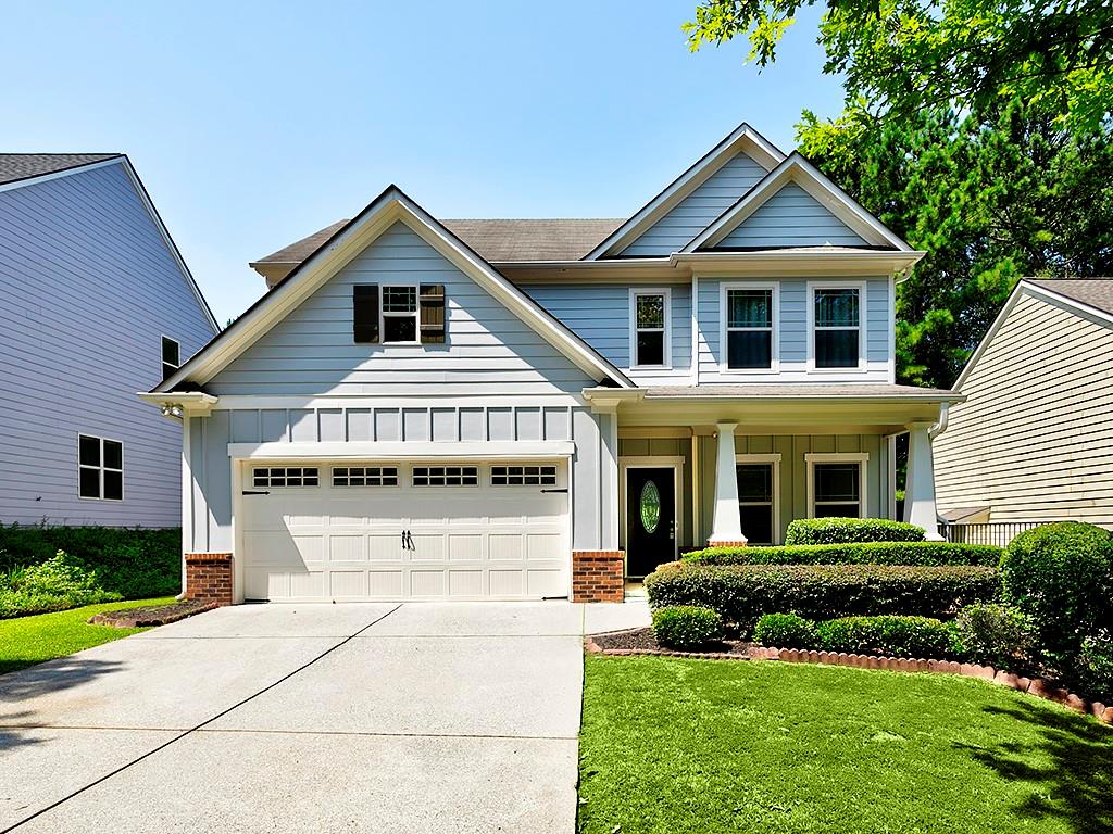 Beautiful, well maintained Craftsman style home. A rare find in sought after Brooks Chase neighborhood. This home has an open floor plan with 2 story foyer, formal dining room, 4 bedrooms, 2.5 bathrooms, and eat-in kitchen. Special features include custom trim work including columns and arches, wrought iron railings along staircase and on second level overlooking 2 story foyer. Large windows in family room allow for plenty of lighting. Nest smart thermostats for energy efficient heating and cooling. Oversized master bedroom suite features walk-in closet, double sink, and granite counters. Recently updated paint and plush, stain resistant carpeting. Security cameras in front and backyard. Backyard is level and wooded for privacy. Close to I-85, GA 316, Mall of GA, Shoppes at Webb Gin, parks, and restaurants.