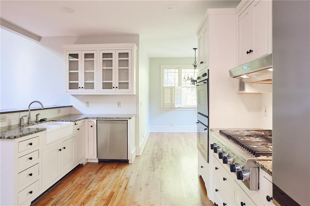 - KitchenCabinets White, Eat-in Kitchen, Pantry, Stone Counters