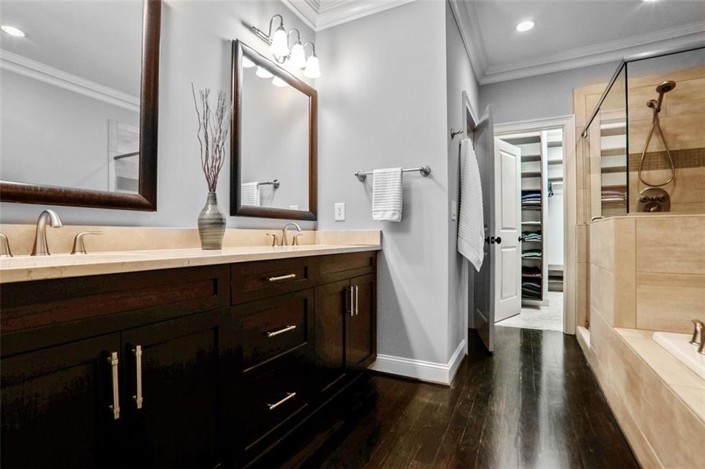 - FeaturesHigh Ceilings 10 ft Main, Bookcases, High Ceilings 9 ft Upper, High Ceilings 9 ft Lower, Crown Molding, Double Vanity, Disappearing Attic Stairs, Walk-In Closet(s)