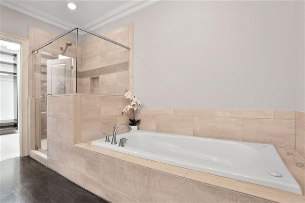 One crosswalk to the Beltline! Experience the best of in-town living in this Ansley Parkside luxury townhome with Ansley Park, Virginia Highland, Midtown, Morningside & Buckhead at your doorstep. Walk, run and bike to Piedmont Park and beyond on this less-busy section of the Beltline. Enjoy all the festivals (or a quiet day) in Piedmont Park, the beauty of the Atlanta Botanical Garden and extensive retail and restaurants without getting in your car. Ansley Parkside is situated in the award winning Morningside school district and only steps to the private Ansley Golf Club. In your ‘new to you’ townhome with 3 bedrooms, 3 baths, powder room and 2 car garage, you will find site-finished hardwoods & plantation shutters throughout. The beautifully appointed kitchen features ceiling height cabinets, stainless steel Viking/Jenn-Air Professional Series appliances and newly polished marble countertops. A freshly painted interior, 10 & 9 ft ceilings with oversized crown molding add to the luxury. When you’re ready for some downtime, enjoy the newly rebuilt, spacious deck. Or, you can lounge by the private neighborhood pool and fireplace with new friends and neighbors.