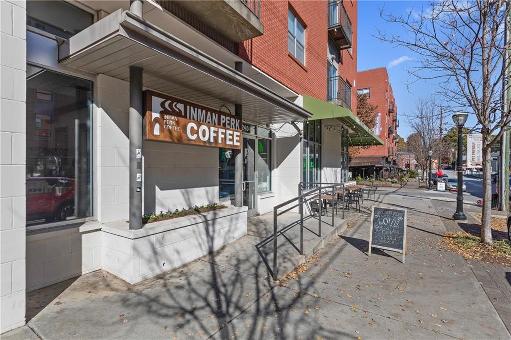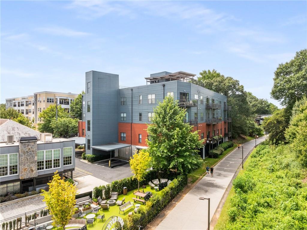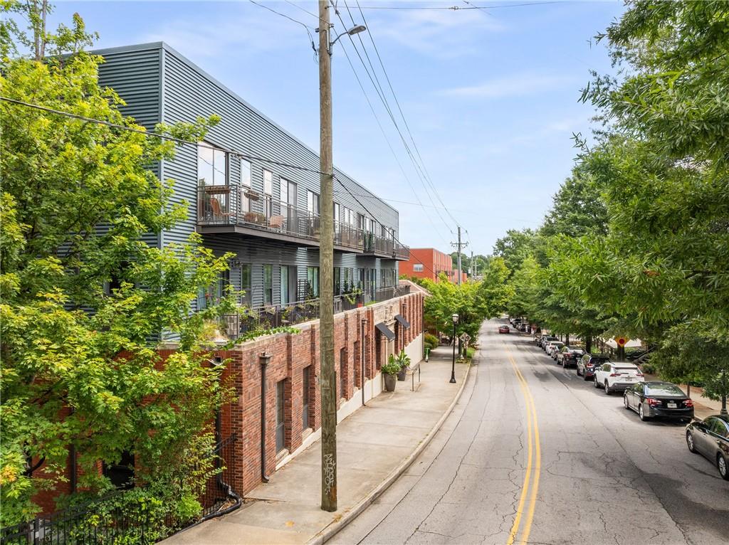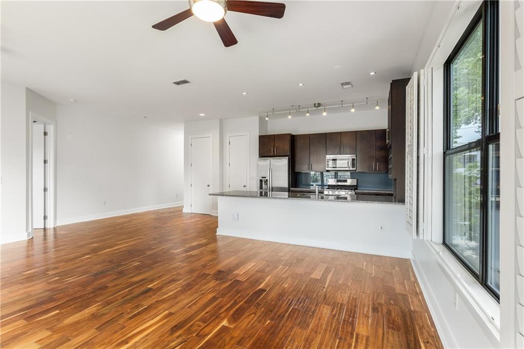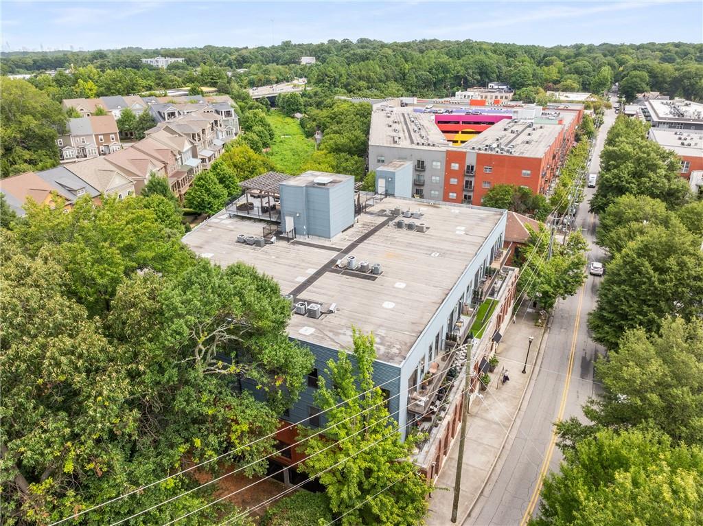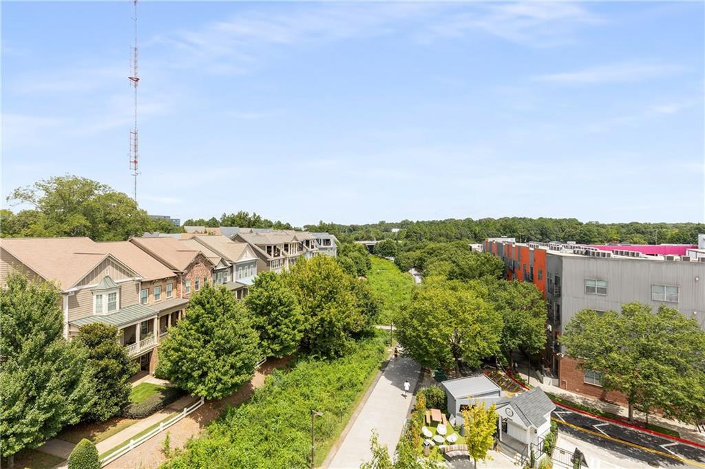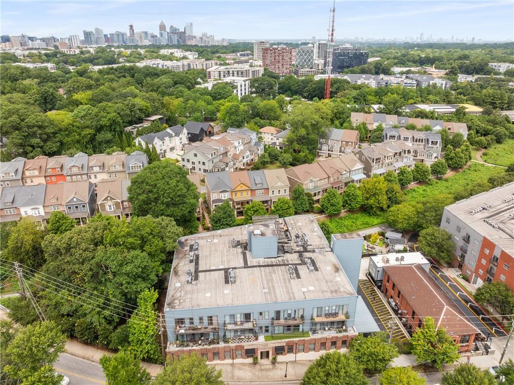 Welcome to Grinnell Lofts, a boutique residential building situated directly on the BeltLine with unmatched access to dining, retail, and green space. This rare top-floor corner residence offers elevated finishes, a spacious layout, and a prime location in one of Atlanta's most connected neighborhoods. The home features ample interior space with 10-foot ceilings, hardwood floors throughout, and large windows with custom plantation shutters that fill the space with natural light. The open floor plan includes a generous living and dining area that opens to a private balcony overlooking the BeltLine. A built-in office nook offers flexible space for work, reading, or creative use. The kitchen is equipped with stainless steel appliances, a gas range, and clean, modern design that integrates seamlessly into the main living area. The two-bedroom layout places each bedroom on opposite sides of the home, allowing for comfort and privacy. Ample storage, including two hallway closets and vertical built-ins, supports a clutter-free lifestyle. Community features include two deeded, covered parking spaces, secure keypad entry, and access to a rooftop lounge with sweeping views. Residents also enjoy a private pool and a fitness facility through X3 Sports, offering modern equipment and a full schedule of group classes. Grinnell Lofts is conveniently located near restaurants, markets, shops, and parks with direct BeltLine access, making it easy to explore nearby destinations including Krog Street Market, Ponce City Market, and Piedmont Park. This home offers a refined blend of comfort, convenience, and location with direct access to one of Atlanta's most active corridors.