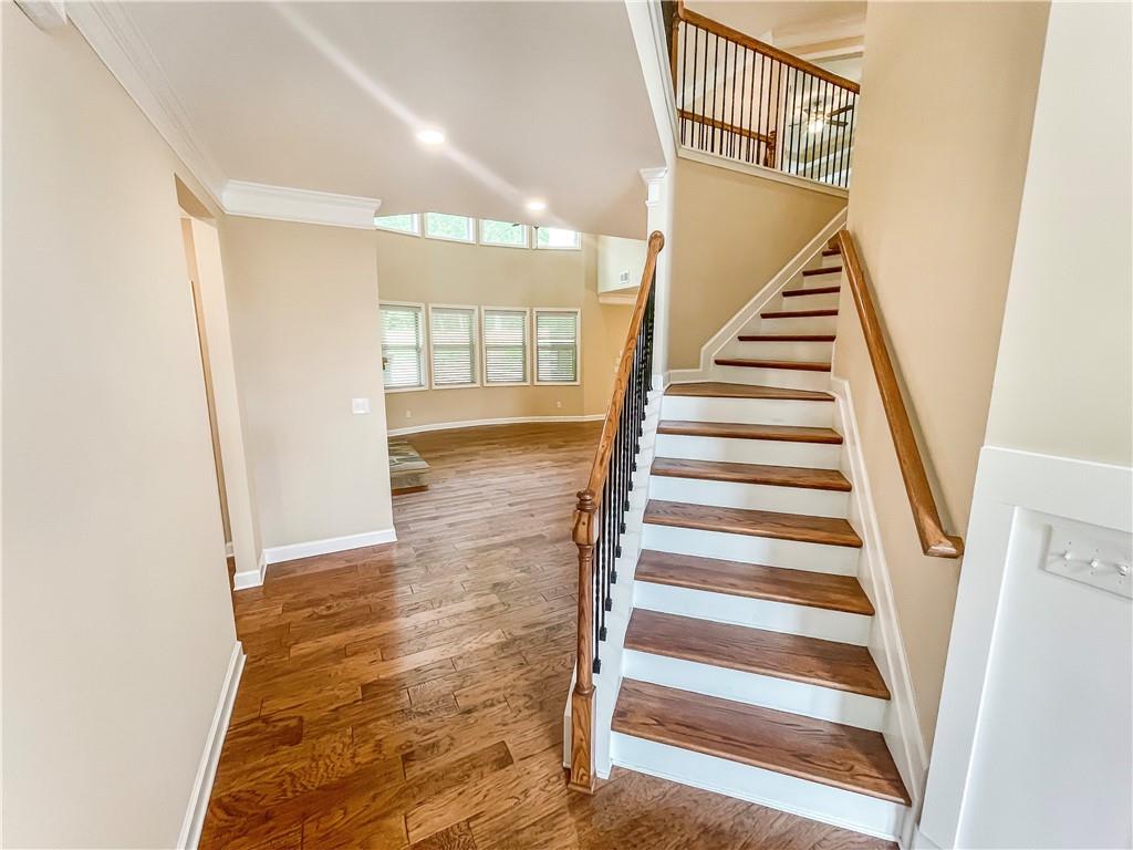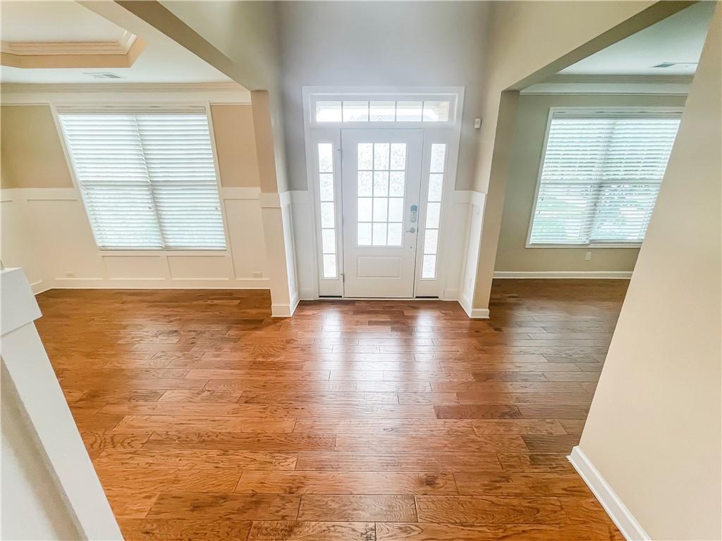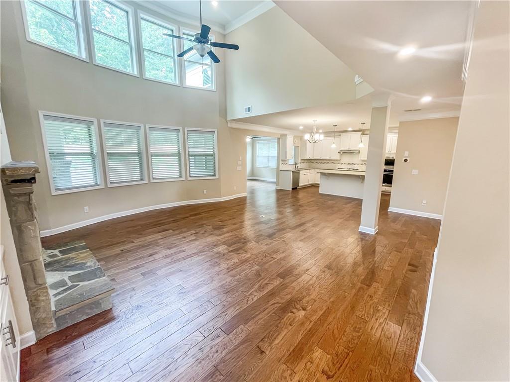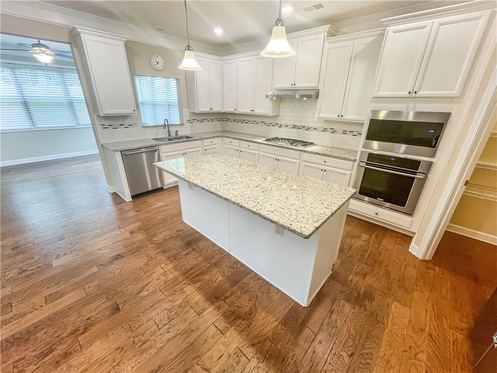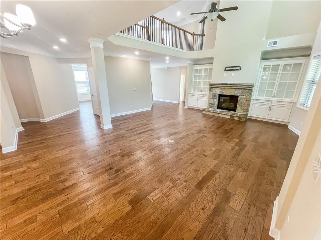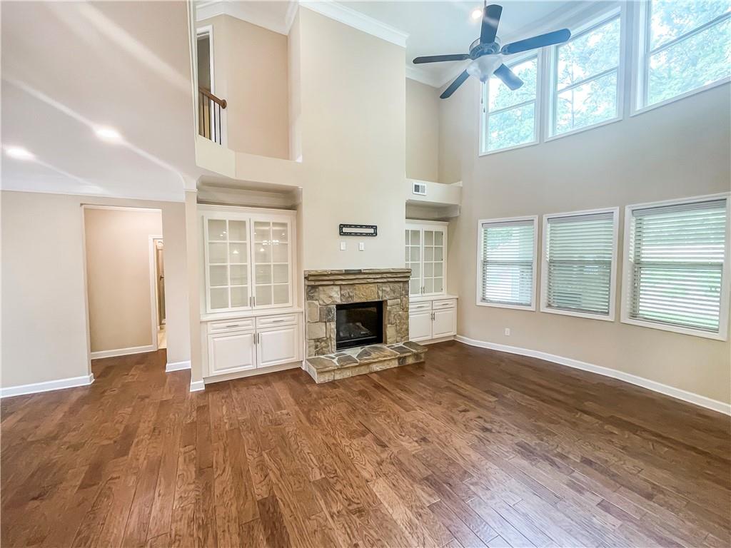 Available September 10th! Beautiful, feature rich 5BR home near downtown Woodstock. Dramatic 2-sty entry Foyer w/Living Rm to the left and a bright Dining Rm rt w/Trey Ceiling and Wainscoting. Ahead is a huge, 2-sty Great Rm w/Stone FPLC, Built-in Bookcases and open views to the Breakfast and Kitchen areas. Kitchen has a lg Bkfst Counter Island, Abundant Cabinets, Walk-In Pantry, SS Appliances and more. Sunroom is adjacent the Kitchen too. This level also boasts Hardwood Flrs in all public areas. a BR on Main, Full Bath and an Office, Mudroom w/Cabinets and a 2-Car Garage. Upstairs are 4 more BR's for a total of 4BR's. Two share a Jack n'Jill Bath and One BR w/pvt Bath. One of the largest Master Suites you've ever seen w/Huge BR and Huge Sitting Area. The Master Bath includes a Walk-In Closet, Dbl Vanities, Garden Tub, Tiled Shwr w/bench and access to the Laundry Room. Wait, there's more - the Patio has a 2nd Fireplace!