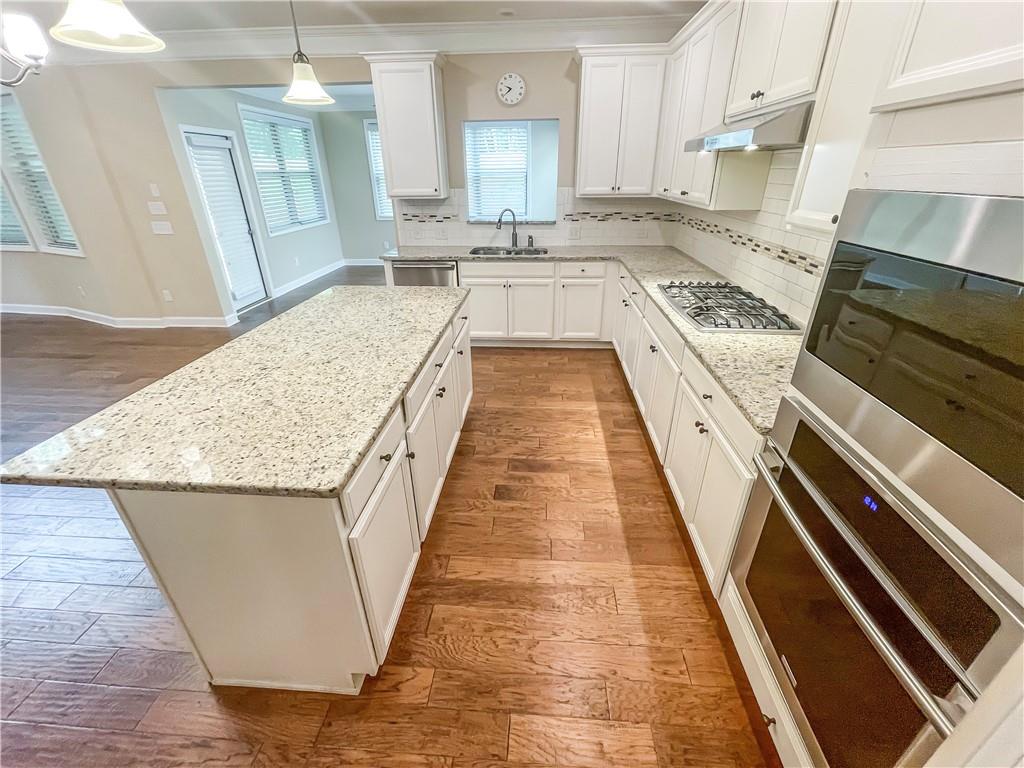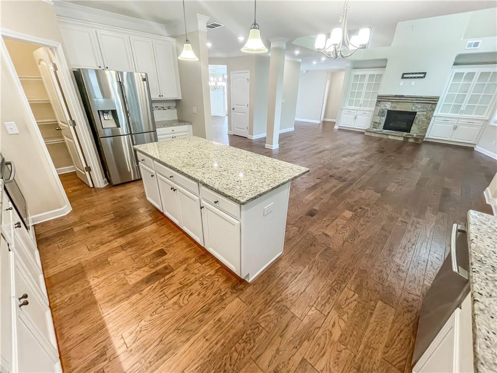- KitchenCabinets White, Eat-in Kitchen, Kitchen Island, Stone Counters