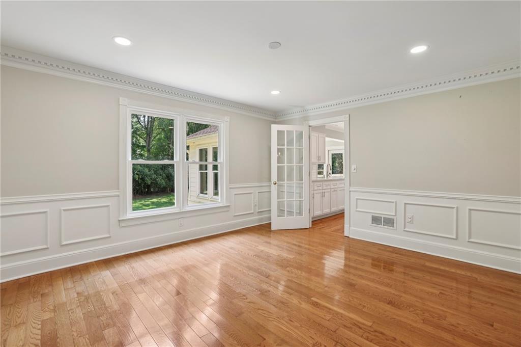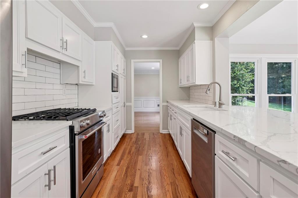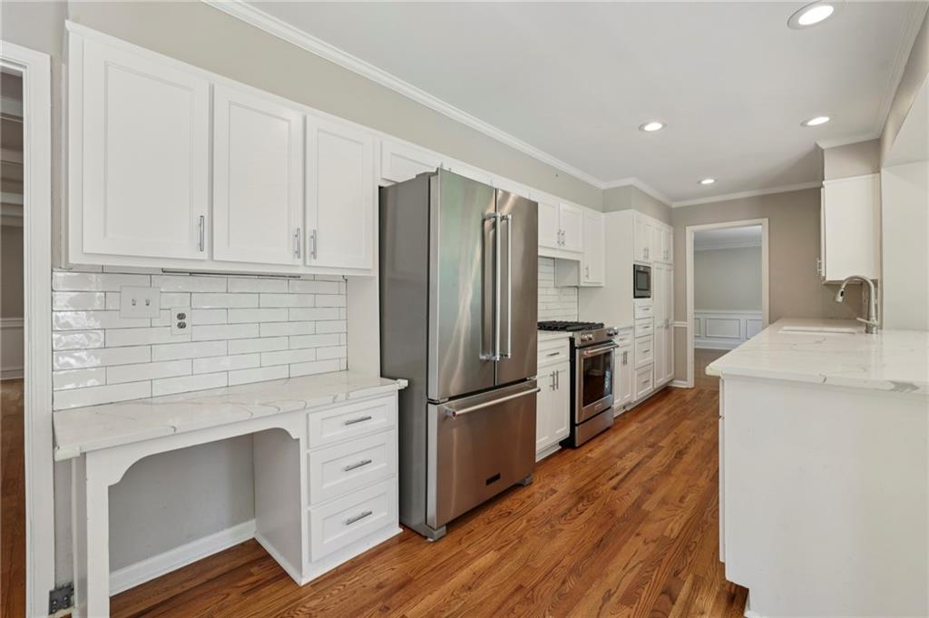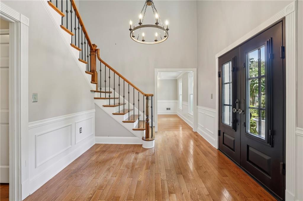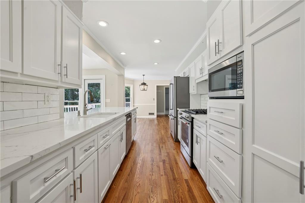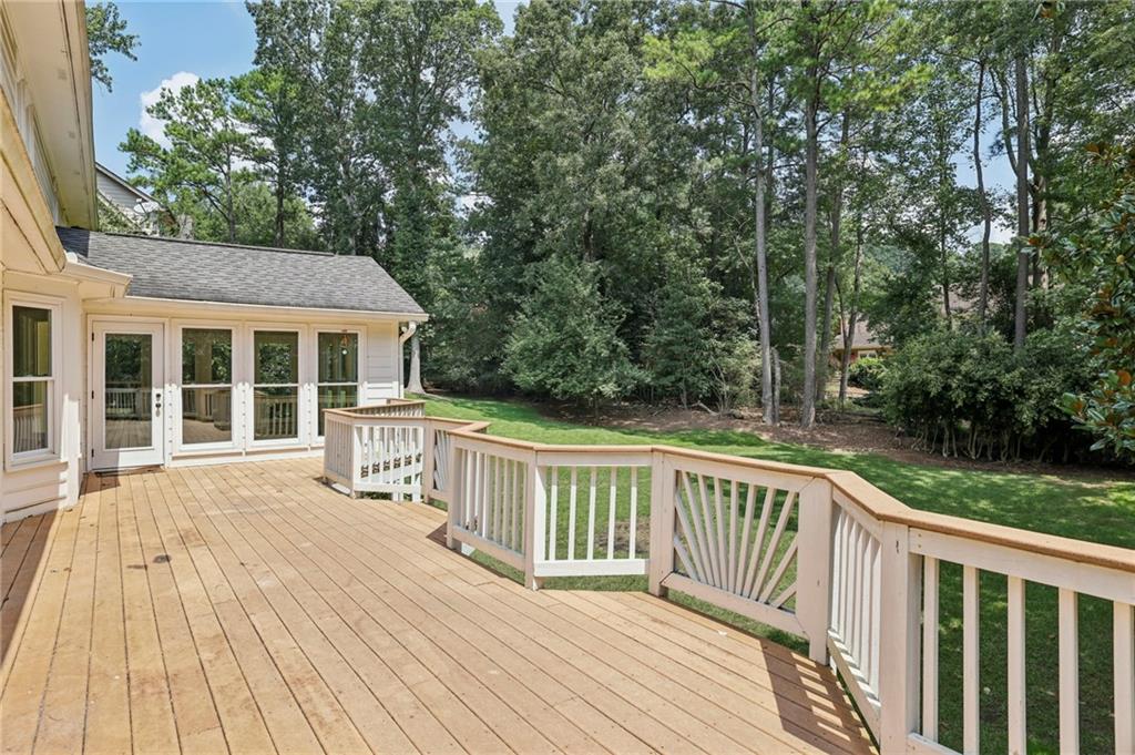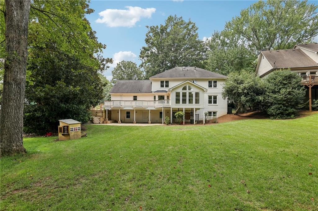 Welcome to this beautifully appointed two-story brick home in the heart of Dunwoody Club Forest-one of Dunwoody's most desirable and established neighborhoods. This spacious and elegant residence offers the perfect combination of comfort, charm, and modern updates, ideal for both everyday living and entertaining. Step through striking double iron doors into a welcoming two-story foyer, setting the tone for the rest of this thoughtfully designed home. The fully renovated kitchen features stunning quartz countertops, an oversized island with seating, and a sunny breakfast area that flows seamlessly into a large sunroom overlooking the expansive, level backyard. The main level includes a separate office, a cozy living room with painted beam ceilings, a fireplace, and a wet bar, perfect for entertaining or relaxing. The banquet-sized dining room offers an ideal space for hosting large gatherings. Upstairs, the oversized primary suite is a true retreat, featuring a huge walk-in closet and an updated bath with dual vanities and a walk-in shower. Three additional sizable bedrooms complete the upper level. The finished terrace level adds incredible versatility with a bedroom, full bath, a recreation/media room, and ample storage areas. Outside, enjoy a large level backyard perfect for play, and an inviting outdoor patio and deck, ideal for grilling and entertaining. Several photos in the listing are virtually staged.