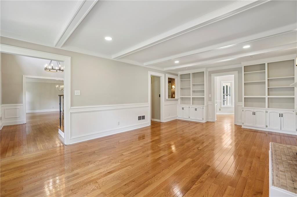 - FeaturesBeamed Ceilings, Bookcases, Disappearing Attic Stairs, Entrance Foyer 2 Story, Walk-In Closet(s), Wet Bar