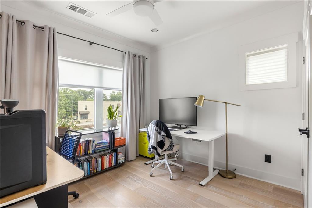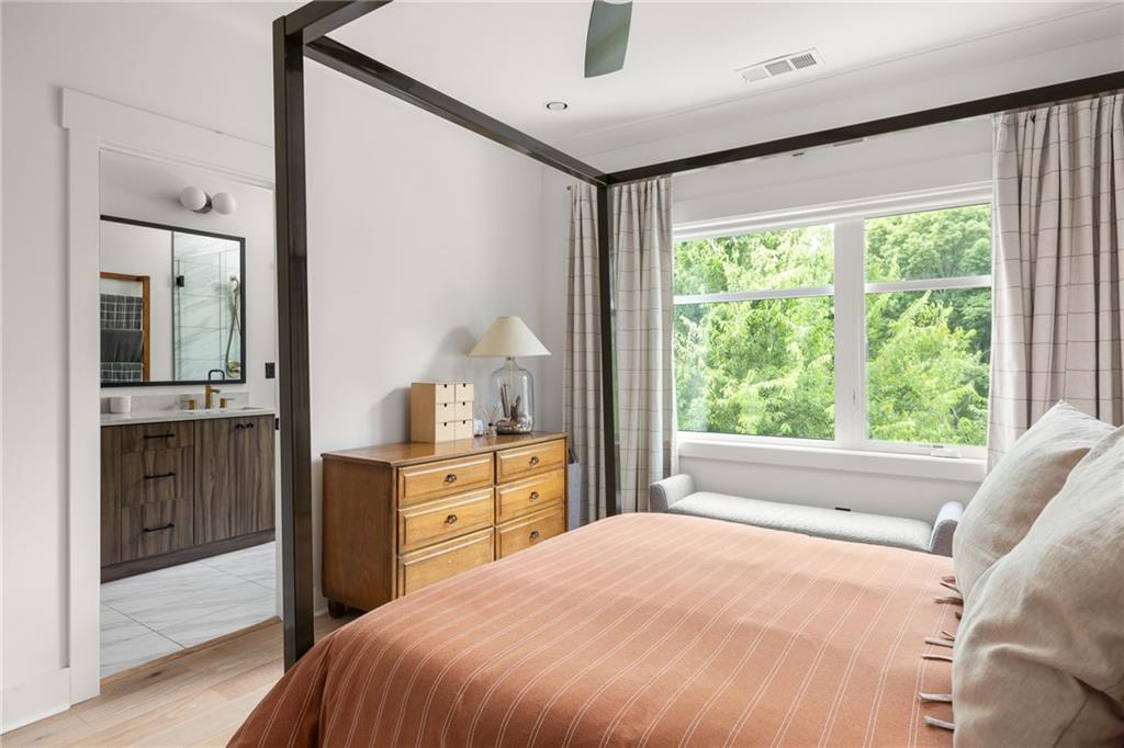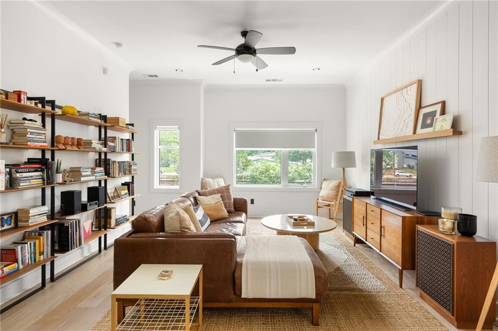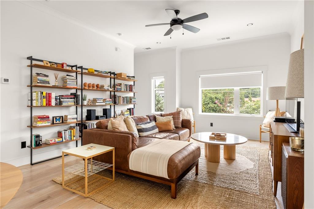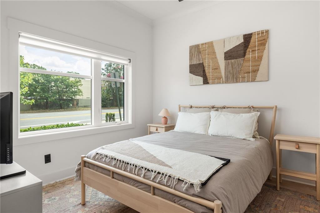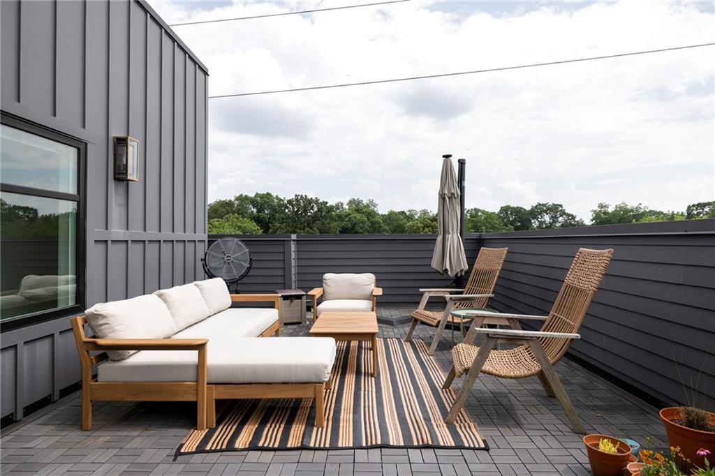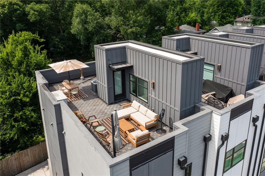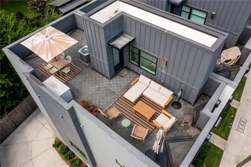 This home may qualify for a below-market interest rate starting as low as 4.5% for eligible buyers who use the seller’s preferred lender. Ask for details! Wake up in the heart of Lake Claire where local restaurants, coffee shops, Candler Park, and Pullman Yards are just steps from your door. Come home to a space that blends modern luxury with the easy charm of intown living. This end unit townhome at Oxford Row delivers soaring ten foot ceilings, hardwood floors, and light streaming through oversized windows from the moment you step inside. The chef’s kitchen is the true heart of the home with a large island offering storage and seating, Viking appliances, quartz countertops, and room for a cozy breakfast nook. Flow easily from the kitchen to the dining area and light-filled living room, then step out to the balcony for morning coffee or an al fresco dinner with a peaceful tree-filled view. Upstairs, the primary suite is your private retreat with a spacious closet and custom built-in system. The ensuite bathroom feels like a spa with high-end tile, dual vanities, and a calming design made for unwinding. This level also includes a secondary bedroom with en-suite bath and a well-sized laundry room for everyday convenience. The rooftop level will quickly become your favorite hangout space with its expansive terrace offering 360 degree views of the surrounding neighborhoods. Whether you are sharing dinner with friends under the stars or soaking in the southern sun, it is the perfect finishing touch. On the entry level, you will find a spacious third bedroom with its own ensuite bathroom, perfect for overnight guests or a dedicated office space. Built-in shelves near the garage entry keep coats, shoes, and daily essentials neatly tucked away, and the two car garage provides secure parking and extra storage for peace of mind. Move-in ready, loaded with upgrades, and walkable to the best dining, shopping, and green spaces in Atlanta, this Lake Claire home checks every box.