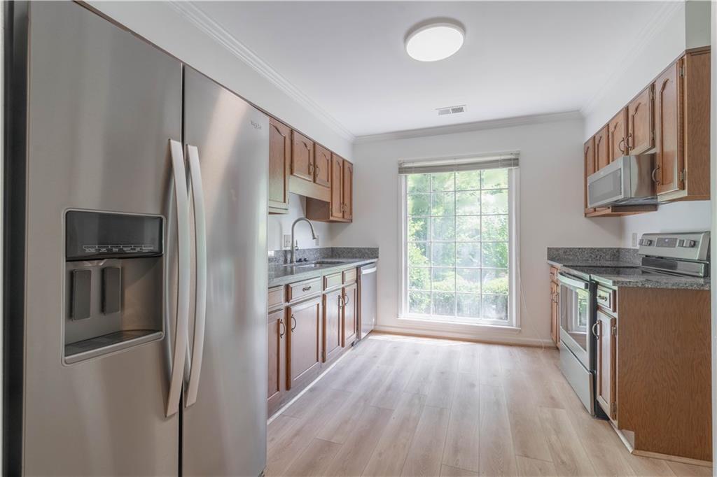 Come see this amazing new listing! Located just minutes from downtown Marietta, shopping, restaurants, and schools, it is in the prime spot offering great convenience to any lifestyle. The home features updated luxury vinyl plank floors throughout the living area, crown molding throughout the home, floor to ceiling windows bringing in copious amounts of natural light, complete with a cozy living room featuring a gas fireplace. The kitchen is fitted with updated stainless steel appliances, granite counter tops, a wide microwave for all types of reheating, a double sided fridge/freezer combo with a water dispenser and state of the art ice maker. Upstairs you will find carpet in pristine condition, laundry situated between both bedrooms for easy access, and two roommate style bedrooms fitted with two closets each, a tub shower combo, and modern low flush toilets that will save you money on your water bill. Outside you will find bonus storage space, a large grass filled back yard with a retaining fence and plenty of sun to enjoy outdoor activities. House is situated on a well maintained street. Be quick, homes here go very fast, I would love to have the opportunity to show you the home! To qualify: 650+ credit, 3x the rent in gross monthly income, no recent evictions, bankruptcies, foreclosures, or any outstanding rental debt.