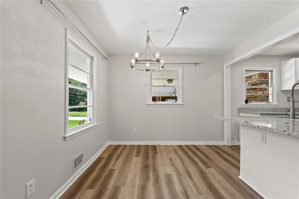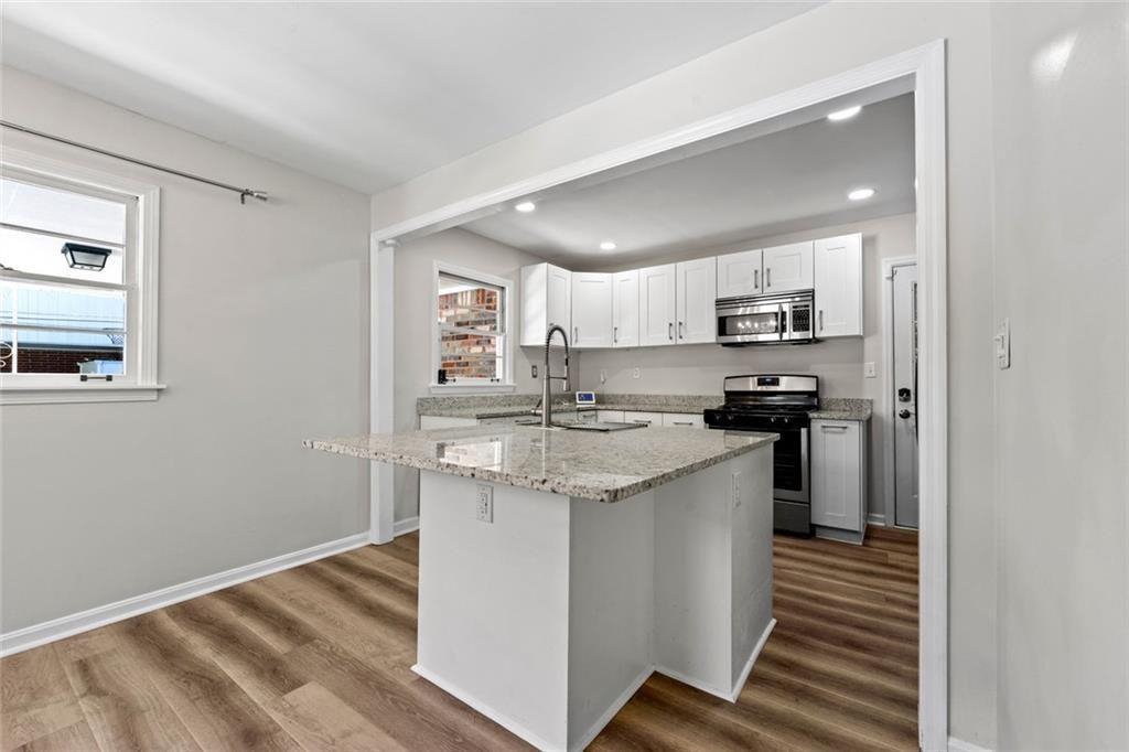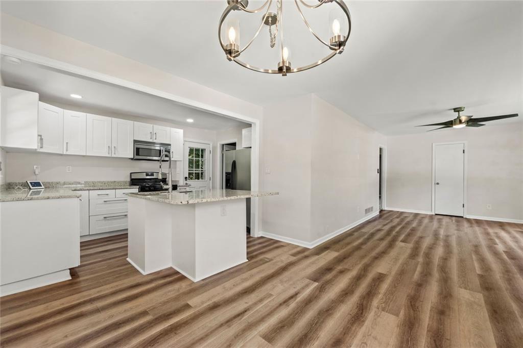 Nestled in the desirable Lindmoor Woods subdivision, this inviting single-story ranch boasts a brand-new kitchen featuring a stylish island, crisp white cabinetry, and new flooring that enhances the fresh, open space. The three comfortable bedrooms provide ample space for family and guests, complemented by a full bathroom and a convenient half bath. The level backyard provides ample room for outdoor fun and relaxation, perfect for family gatherings or gardening enthusiasts. Greet neighbors from your front porch and the brand new driveway makes parking a breeze. This home is just steps from the Lindmoor Woods Swim and Tennis club. Easy access to Decatur, local shopping, and the highly anticipated Lulah Hills development!