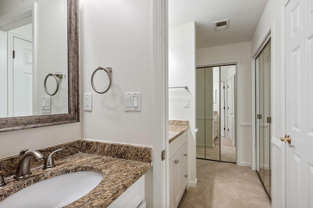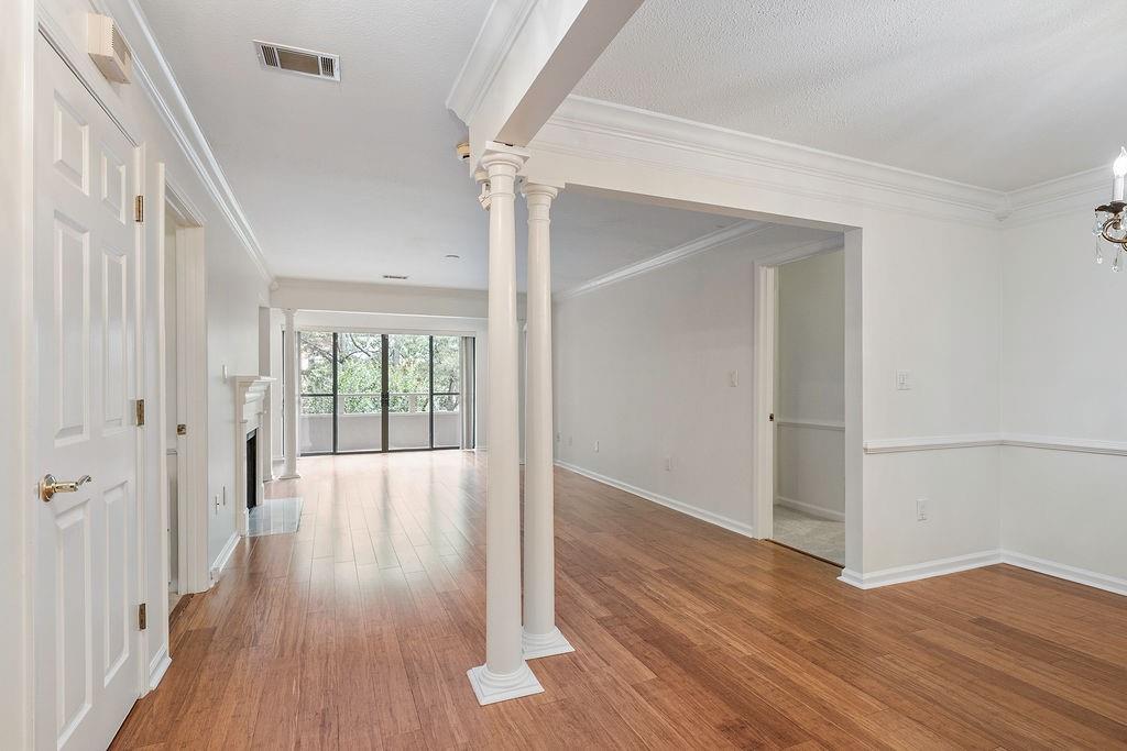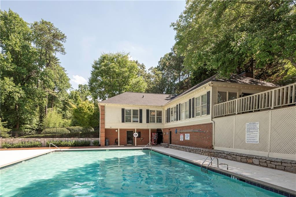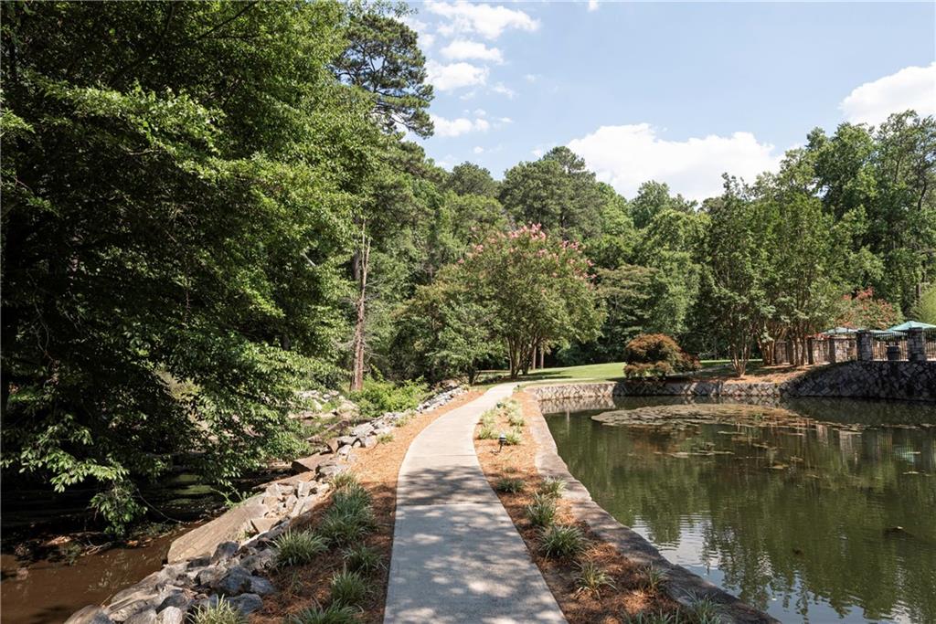 Beautiful floorplan in this lovely community located on 35 acres in the Heart of Buckhead. Plenty of room to walk or jog in the gated community and enjoy all the water features including a creek which runs through the property. This condo has been renovated with new paint and carpeting. The main area has wood floors and columns softly separating the dining room, great room and sunroom. Both bedrooms have nice closet space and private baths. This is one of the bigger roommate floorplans there. There is a separate laundry room that has extra storage. The kitchen has stainless steel appliances and the countertops are granite. There is deeded, covered parking with 2 spaces for this home. The amenities include a pool, clubhouse with catering kitchen, fitness center with a library upstairs and a gate attendant monitoring the entrance.