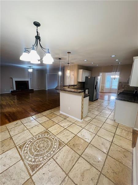 - KitchenBreakfast Bar, Breakfast Room, Country Kitchen, Eat-in Kitchen, Pantry, Solid Surface Counters, View to Family Room