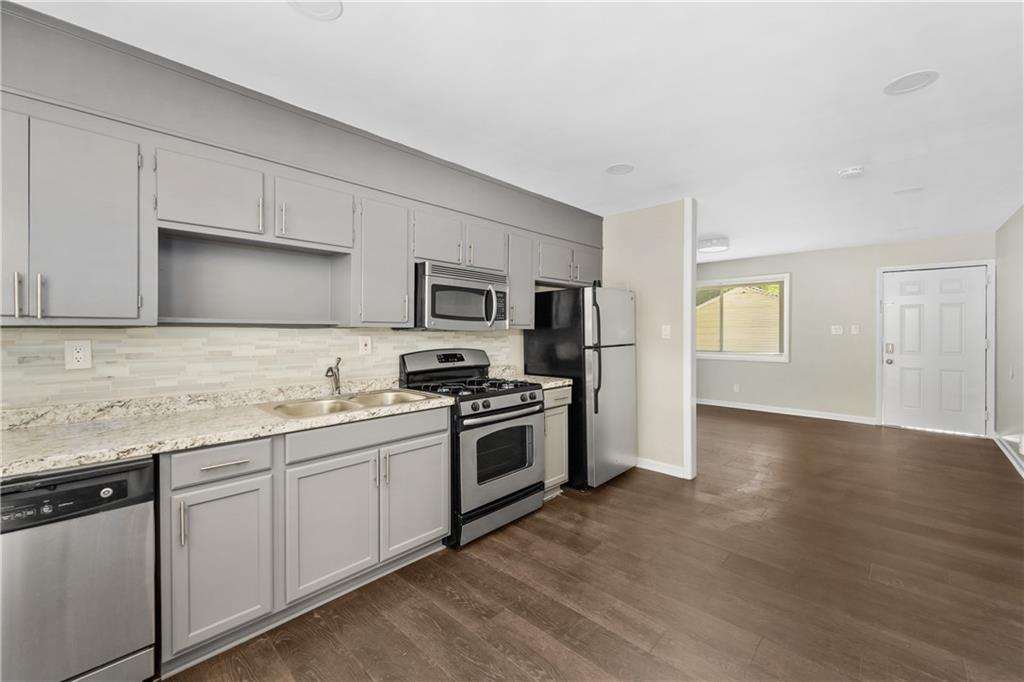 Come Check out this Completely Renovated, Large 2/1 In East Point. Open Floor Plan Featuring Hardwood Floors throughout the Entire Unit. Renovated Kitchen w/ Brand New SS Appliances, Granite Countertops, & Tons of Cabinet Space. 2 Large Bedrooms w/ nice size closets. Brand New Spa Like Bath w/ Large Tub/Shower, Custom Tile Throughout. New Lighting, Windows, Blinds and More Make this house energy efficient. Close to HWYS, City of Atlanta Downtown East Point. Tenant Moving out 8/31/2025