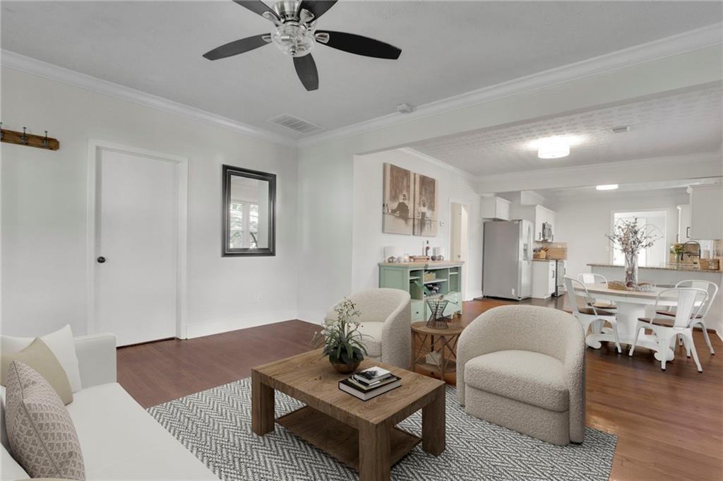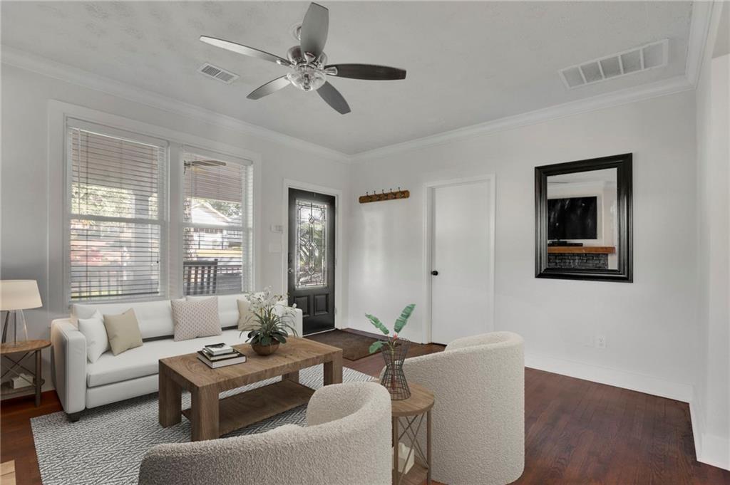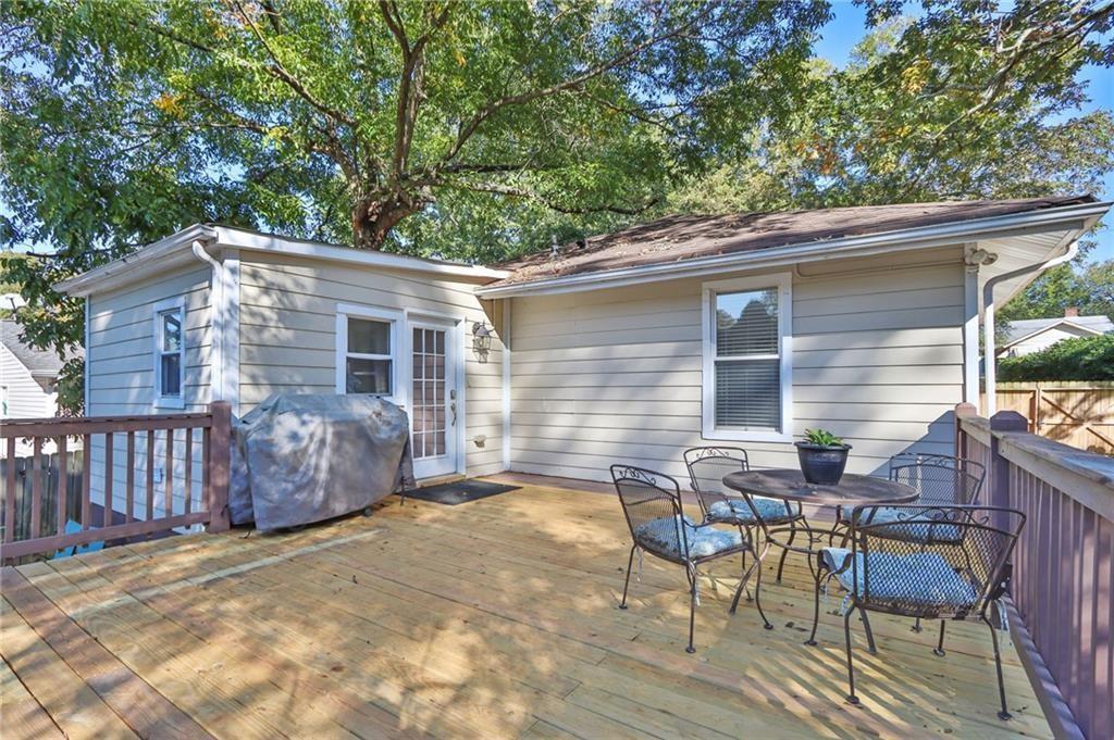 Updated Bungalow in the Heart of Edgewood! Boasting an Unbeatable Location just steps to the new Superette, being only two blocks from the brand new Trolley Line Trail extension to the Atlanta BeltLine, Walker Park, Krog Street Market, Coan Park, El Tesoro, Ponce City Market and more. This Bungalow is situated on a private, fenced in lot that is beaming with charm from the moment you drive up. The porch swing under the covered front porch greets you as you walk up. The gleaming hardwood floors and recently painted interior welcomes you into the home. The spacious living room features a brick fireplace, oversized windows allowing an abundance of natural light throughout. Open Dining area with a view to the kitchen and living room. The kitchen features stainless steel appliances, tile back splash, granite counter tops and a breakfast bar. All three bedrooms offer plenty of space with natural light and hardwood floors. Both bathrooms have been updated including tiled showers to the ceiling and stone countertops. The large deck, accessible from the main living area, provides a wonderful outdoor retreat, ideal for entertaining or simply unwinding in the privacy of your backyard. The private, fenced in back yard offers plenty of storage and parking.