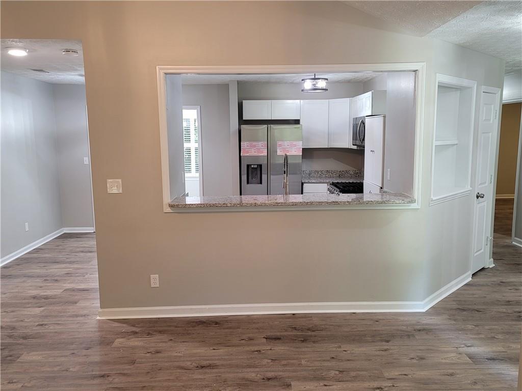 - KitchenBreakfast Room, Cabinets White, Pantry, Solid Surface Counters, View to Family Room