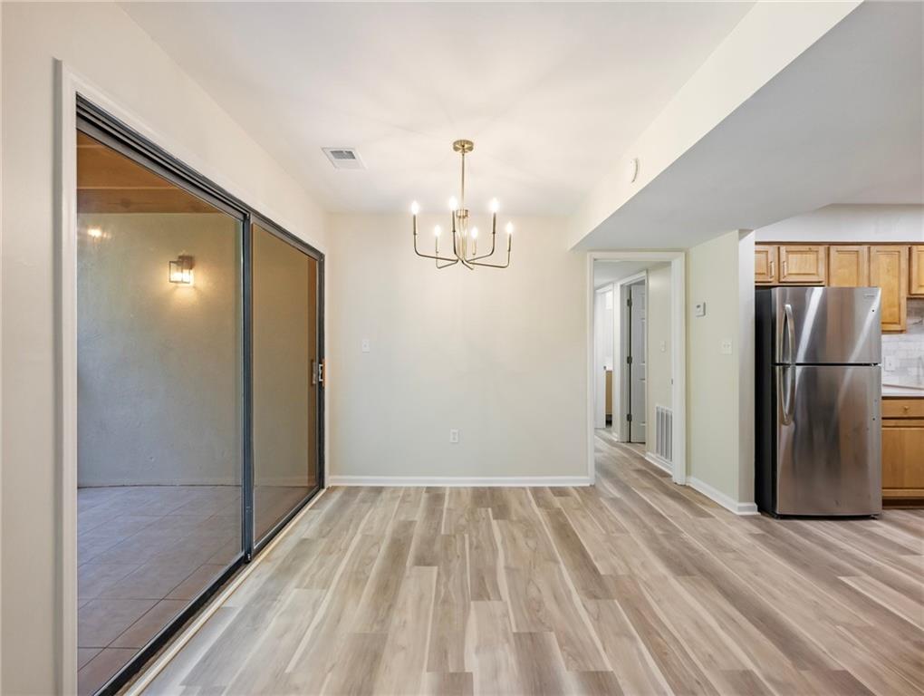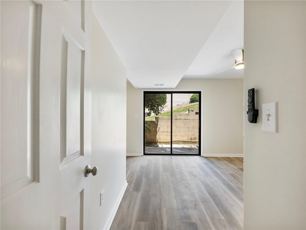 Welcome to this sparkling modernized three bedroom, two bath condo with large flex space that can be used as an office, formal dining room or second family room. This complex is walking distance to downtown Gainesville, Brenau University and adjacent to City Park where there are baseball fields, walking trails, football field, playground. This is a wonderful opportunity for any type of Buyer, investor or owner occupant. ALL new LVP flooring throughout, no carpet! The kitchen has all brand new stainless steel appliances, quartz countertops, marble backsplash and brushed gold hardware and farm sink. The large laundry room is large with a newer hot water heater. Full bathroom has brand vanity and brand new shower/tub with all new light fixtures throughout. Each bedroom has new remote control operated ceiling fans. The primary suite has a private patio and walk-in closet with private bathroom with custom tile shower with glass shower door. The dual vanities in the bathroom are perfect for sharing. There is an additional covered back porch overlooking the baseball field and greenspace to easily play on or walk pets. Building exterior was just freshly painted.