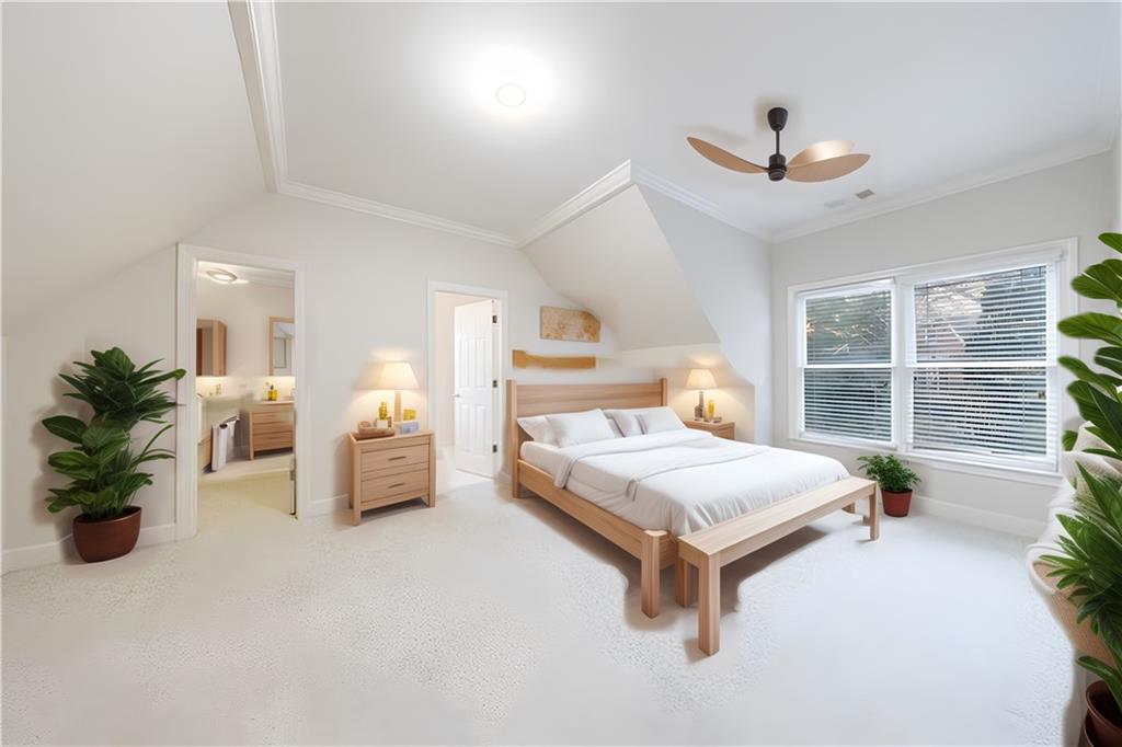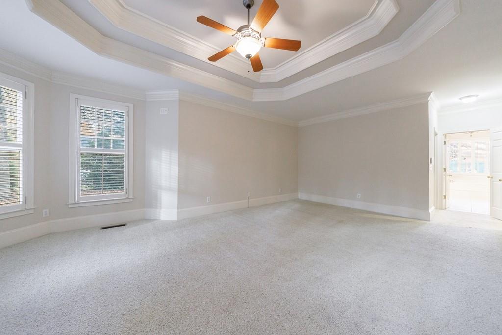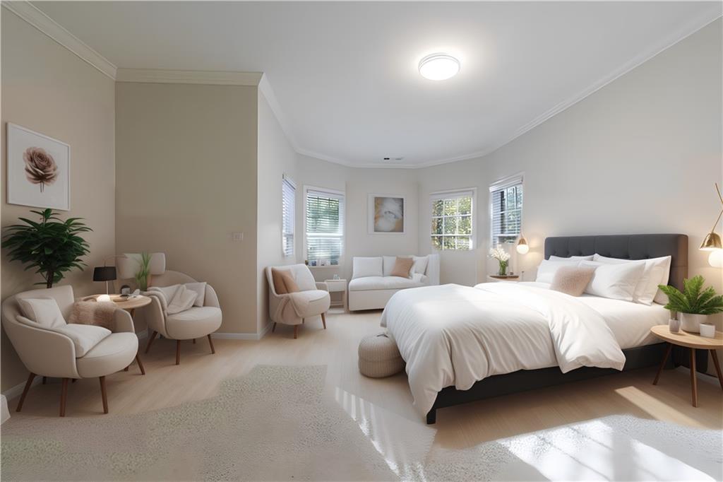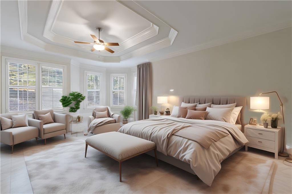 Indulge in the epitome of luxury living with this magnificent estate nestled in the coveted gated guarded prestigious Sugarloaf Country Club featuring master on main home at such a lucrative price with neutral tones has a true transitional style through out, boasting one of the most seamless floor plan in the community. Gorgeous craftsmanship on this 4 sided brick home. This home is freshly painted inside and outside ready to move in, sits alongside a cul-de-sac. It features 6 bedrooms, 5.5 baths. At the heart of this exquisite home lies the gourmet kitchen, adorned with abundant contemporary custom cabinet and solid counter tops and stone floors, stainless steel appliances, with center island, 6 burner Viking stove, Sub-zero refrigerator, Dishwasher, perfectly flowing into the welcoming family room. Very spacious Master suite on main with trey ceiling and sitting area, fully built out his and her closet. The Master bathroom has expansive beautiful quartz counter counter and makeup area, a large jacuzzi tub to pamper yourself, and walk-in shower. All bathrooms with newer Quartz countertops and new contemporary faucets throughout. All high quality wooden plantation shutters throughout the house, all bedrooms with walk in closets fully built out. One of the Rooms upstairs serves as a Work from Home office. Wrought Iron Staircase, level private backyard is exceptionally large ready for a walk out pool with entertainment walk out patio. This home has been freshly painted. The laundry room is on the main level. The lovely 2 story family room has a cathedral ceiling, built-in bookcases, a fireplace – great for entertaining! The formal dining room seats 12. There is an abundance of natural light throughout. Optional Membership in TPC Sugarloaf offers PGA level 27 hole golf course, clubhouses, swimming pool, fitness center, playground, tennis courts and pickle ball courts. Great location! Close to a huge community park with running/biking track and sport fields. Minutes to shopping, dining, entertainment, and nearby Gas South Arena. An exquisite property for an executive lifestyle is a true masterpiece of functional elegance offering a harmonious blend of luxury and practicality sitting on a Quiet Cul-de-sac location of Sugarloaf Country club.