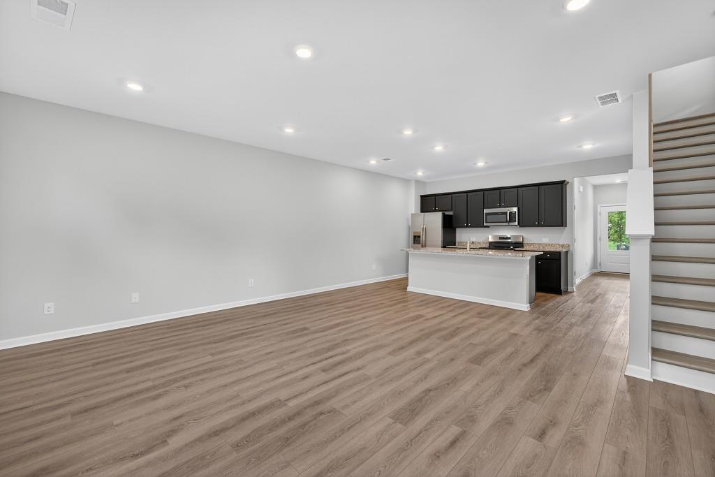 Welcome Home! This former model home is only one year old and brimming with designer touches throughout! As an end-unit townhome with timeless brick accents, it offers both style and convenience. Step inside to an open concept layout where LVP flooring flows seamlessly across the main level for easy maintenance. The kitchen shines with sleek black cabinetry, granite countertops, a sizeable island, and stainless steel appliances - including a side-by-side refrigerator. Overlooking the spacious family room, it's perfect for entertaining or everyday living. The family room opens through a full-light sliding door to a private rear patio with privacy panels - ideal for enjoying your morning coffee. An abundance of recessed lighting and a designer wallpapered powder room complete the main level. Upstairs, retreat to the primary suite, highlighted by two walk in closets, plus a designer wallpaper accent wall for that extra wow factor. The primary ensuite bathroom features a double vanity with painted cabinetry, LVP flooring, and a modern subway tile shower with glass door. Two additional bedrooms share a full bath with painted cabinets and LVP flooring, while a spacious laundry room (washer & dryer INCLUDED!) adds convenience. This home truly combines style, function, and low-maintenance living. Don't miss the chance to make it YOURS!