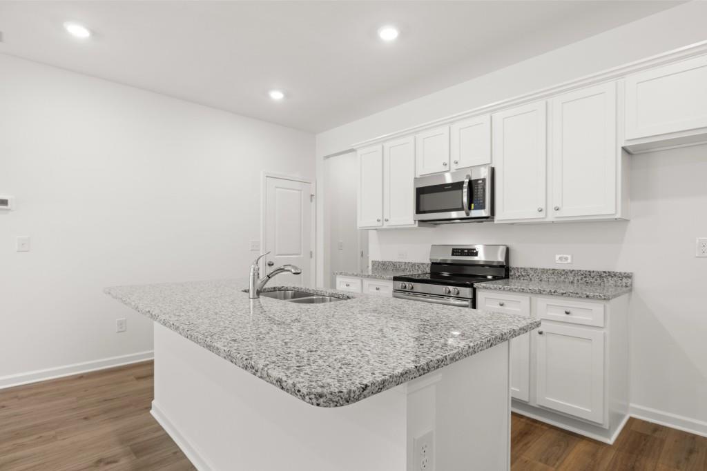 - KitchenBreakfast Bar, Eat-in Kitchen, Kitchen Island, Pantry Walk-In, Solid Surface Counters, Stone Counters, View to Family Room