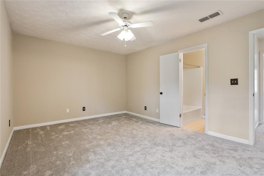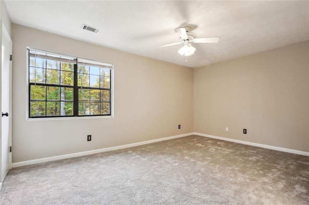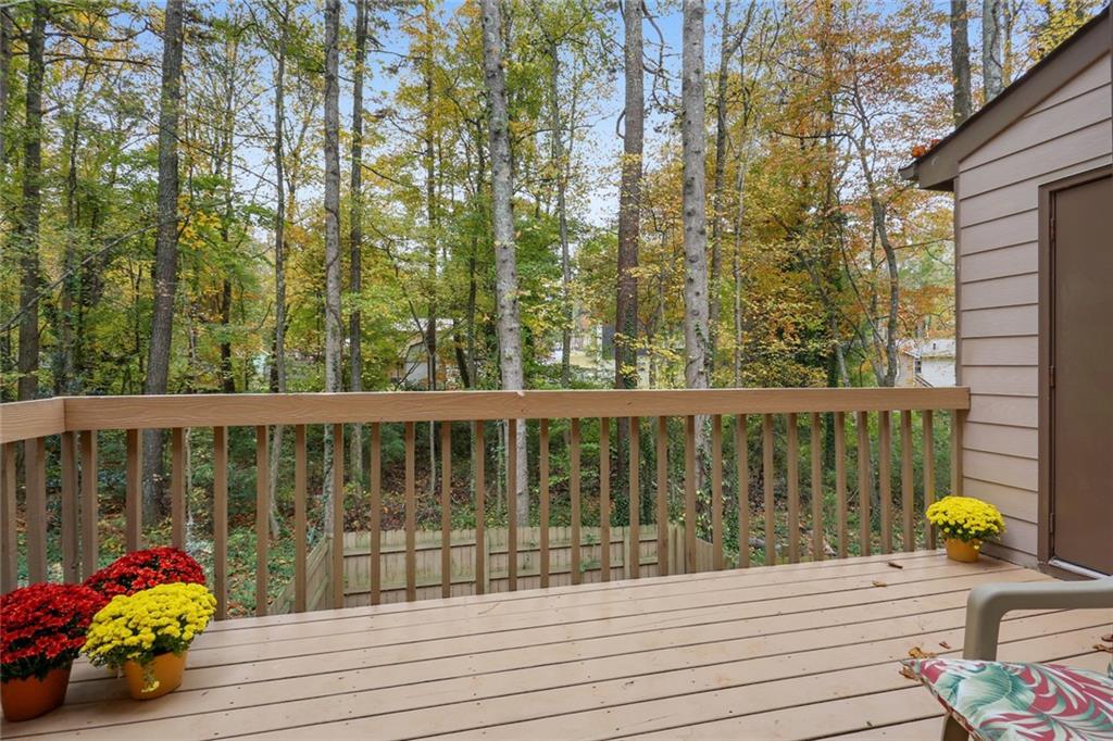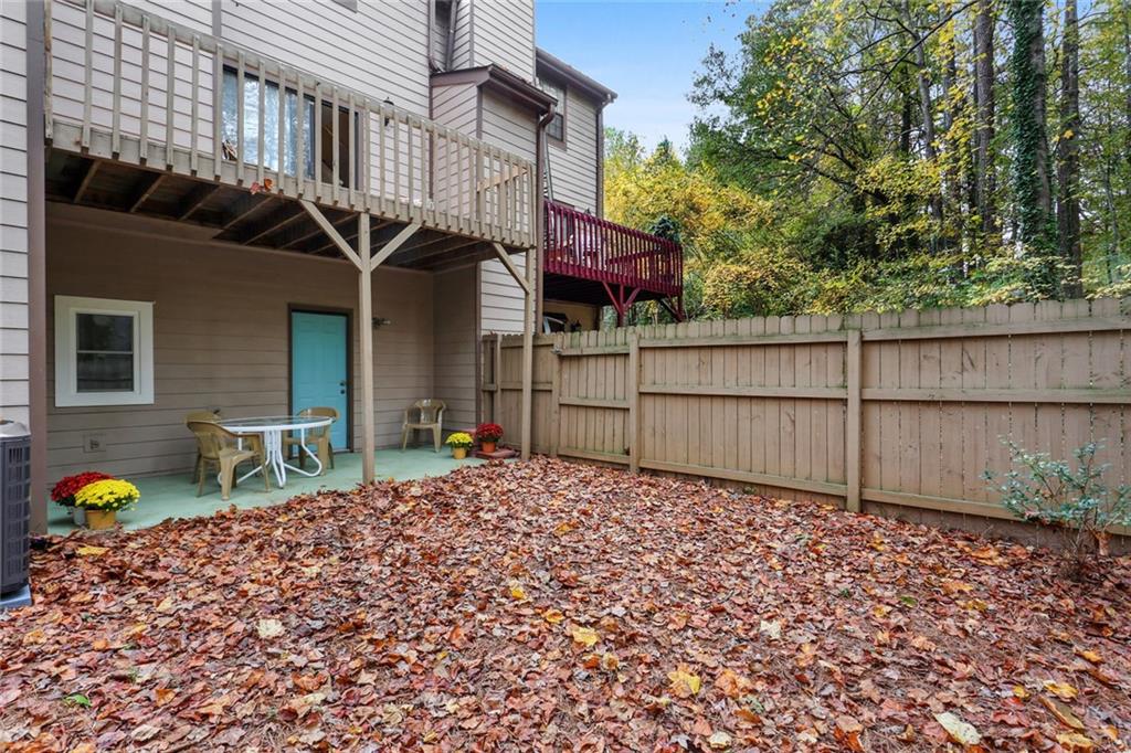 Wonderful Townhome in Great Marietta Location! One of the few 3 story, 2 bedroom, 2.5 bath townhomes in the community with optional 3rd Bedroom, Office or Flex Space in the Finished Basement. Updated Carpet, Cabinets, and Countertops. Gas cooktop and oven. Upstairs, you will find a roommate floor plan with two large bedrooms each with a private full bath. Primary bathroom has large soaking tub. In the finished basement is the space for a 3rd bedroom and an additional room for office, gym or flex space. Newer Washer & Dryer included. Newer sliding doors provide lots of natural light in the family room and lead out to a deck off the main level and patio underneath for outdoor living and entertaining. The unit is located in a cul-de-sac, overlooking a wooded area for privacy with a fenced back yard. Two parking spaces in driveway. Lawn care is included. Conveniently located near shopping, parks, and a great location for anyone working at Wellstar Cobb Hospital.