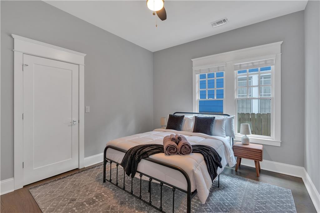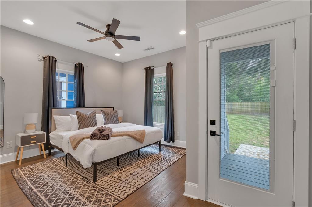 An incredibly charming, renovated bungalow in Historic West End. With 10 ft ceilings, gleaming hardwood floors throughout, an open concept floorplan, front and back porches, and a true primary suite, this home has it all. The living room with original fireplace and a shiplap feature wall opens to the kitchen with stone countertops, custom cabinets, and stainless-steel appliances, including a gas range. The adjacent dining area opens directly to the back porch, creating a perfect indoor-outdoor connection, opening to the large patio and flat fenced backyard, a perfect area for playing and pets to roam. The primary suite includes roomy closet, an additional door to the back patio, and private bath with double vanity and large walk-in shower. Two additional bedrooms share a renovated hall bath, offering comfort and flexibility for guests, family, or home office needs. There are window treatments throughout, a laundry closet with full-size front loader washer and dryer, and attic storage. There is so much to do in the West End! This home is close to the West End Trail of the Beltline, near the shops and restaurants of the Lee +White Mixed-Use Development, and so many parks to visit. This home is an excellent choice for an investor. It has been consistently rented and with Mercedez-Benz stadium just 3 miles away, would be an excellent candidate for short term rental during the upcoming World Cup games to be played in Atlanta in the summer of 2026. There is no homestead exemption on this home. Additional photos coming soon.