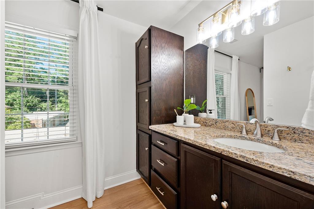 Discover exceptional value in this beautifully renovated 2-bedroom, 2.5-bathroom townhome at 1498 Leafmore Place in the heart of Decatur! Originally built in 1972, this end-unit condominium has been thoughtfully updated and meticulously maintained, offering modern comfort and classic charm. Step inside to an inviting living space featuring a cozy fireplace perfect for relaxing evenings. The separate dining room flows seamlessly into a kitchen that underwent a significant renovation. Enjoy new tile floors, wooden soft-close cabinets, Samsung appliances, quartz countertops, and designer West Elm lighting, creating a stylish and functional hub for cooking and entertaining. A convenient half-bath is also located on the main level. Upstairs, you'll find two generously sized bedrooms, each boasting its own en-suite bathroom with a tub/shower combo. The entire home benefits from fresh paint, new floors, and updated fixtures, baseboards, and window treatments throughout. Additional upgrades include a new front door & storm door, attic door replacement, and a hallway closet addition, enhancing both aesthetics and functionality. Outside, enjoy a courtyard with new landscaping, lighting, and a screen, providing a private oasis. The property also features a two-car garage with new lighting and a dedicated laundry room with new appliances. Leafmore Place is a sought-after gated community with fantastic amenities, including a swimming pool (private and in-ground), and is part of a vibrant neighborhood near schools, shopping, and restaurants. Situated in the Oak Grove school district, this location offers unparalleled convenience. You're just a short walk from Oak Grove Village, which is home to popular eateries like Sprig Restaurant, known for its Southern-inspired dishes, and popular spots like the Oak Grove Market. For those seeking a lively atmosphere, nearby Decatur Square offers a plethora of bars and restaurants such as The Brick Store Pub and Kimball House, easily accessible for a night out. Enjoy proximity to local parks and community events, making this an ideal spot for those seeking an active and connected lifestyle. With recent sales of similar 2-bedroom, 2.5-bath townhomes in the neighborhood reaching $425,000, this property represents an outstanding opportunity at an exceptional value!