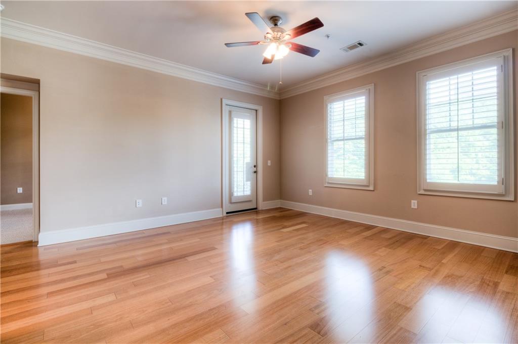 One of a kind TOP FLOOR end unit in most desirable Vinings Main. Bright, open, roommate plan with extra windows. No one above or on either side. Located close to elevator and two easily accessible side by side corner parking spaces. New HVAC units in 2017, upgraded lighting, ceiling fans, programmable Nest thermostat. Plantation shutters throughout. Be sure to visit the great amenities in the complex. Convenient to dozens of restaurants, shopping, airport, Buckhead, Atlanta Braves Baseball, the Battery Entertainment Complex, and Cobb Energy Centre. This is a unique opportunity in the heart of Historic Vinings Village.