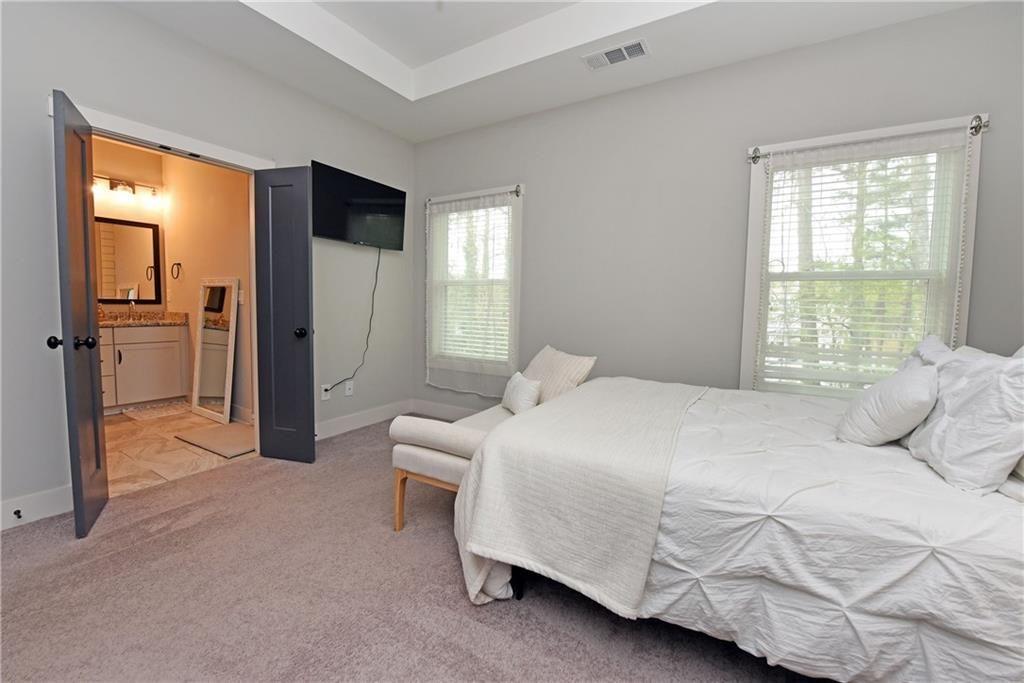 Welcome to the best gated location in metro Decatur/Tucker - close to Emory, CDC and Emory Decatur Hospital! This stunning townhome is nestled in the highly sought-after, intimate gated Lindmoor Row, Minutes from Decatur Square and Tucker Main Street, and only 10 - 15 minutes to Buckhead, Midtown, Downtown, Emory, and the CDC. Close to 285 for a quick and easy commute. Step inside to discover a beautiful home with natural light and hardwood floors throughout. The main level features a bright white kitchen with quartz countertops, stainless steel smart appliances, and an oversized island with plenty of counter space and eat-in bar area. View to keeping room with a cozy fireplace, custom built-in shelving, and a half-bath with designer tile. French doors off the large dining room lead to a private deck overlooking a tranquil greenspace, creating an ideal space for entertaining or relaxing outdoors. Don’t miss the beautifully designed laundry room with a smart washer and dryer that stays with the home. This home offers true flexibility with 4 spacious bedrooms, including two large primary suites on the upper level with double vanities, oversized frameless showers, and walk-in closets. The terrace level is perfect for additional living space, with two bedrooms, a full bath, and a private entrance—perfect for guests, in-laws, roommates, or flexible room usage. The neighborhood with a gated dog park and an unbeatable location near Downtown Decatur, restaurants, food trucks, farmers markets, parks, and new Lulah Hills - $15 Technology Fee