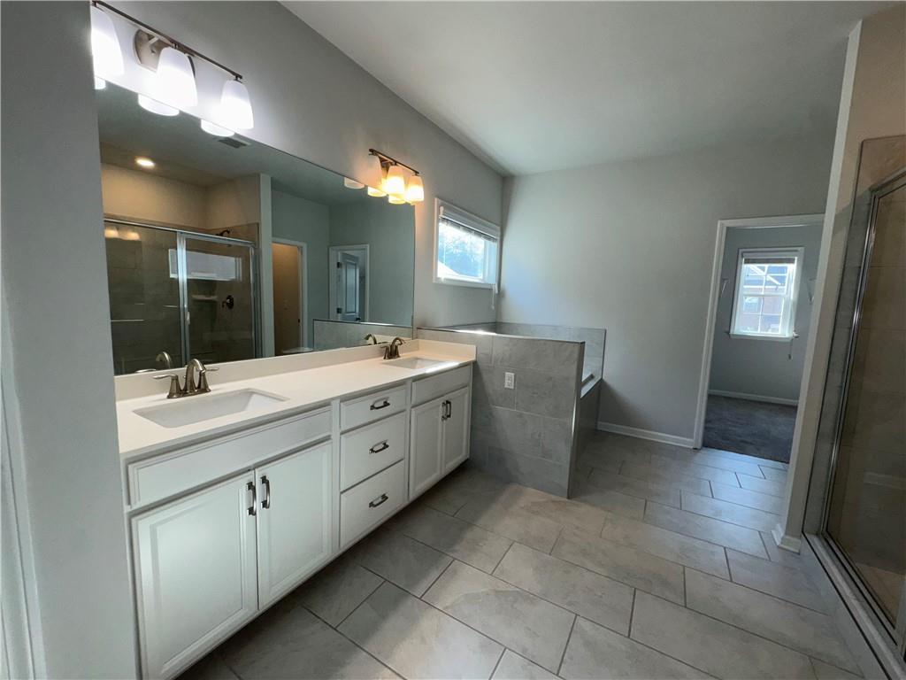 Beautiful 4BR/3BA Rental Home in Prime Location! Step inside to a bright two-story foyer and 9-foot ceilings on the main level. The open-concept great room, filled with natural light from a wall of windows, flows seamlessly into the gourmet kitchen. Here you’ll enjoy a large island with pendant lighting, quartz countertops, white cabinets, and a walk-in pantry. Upstairs, the primary suite offers a relaxing retreat with a soaking tub, separate glass shower, dual vanities, and a generous walk-in closet. Two additional bedrooms, a guest bath, and a loft complete the upper level. The community features fantastic amenities including a pool, tennis courts, playground, pavilion, and even views of the Atlanta skyline. Conveniently located near shopping, dining, and major highways.