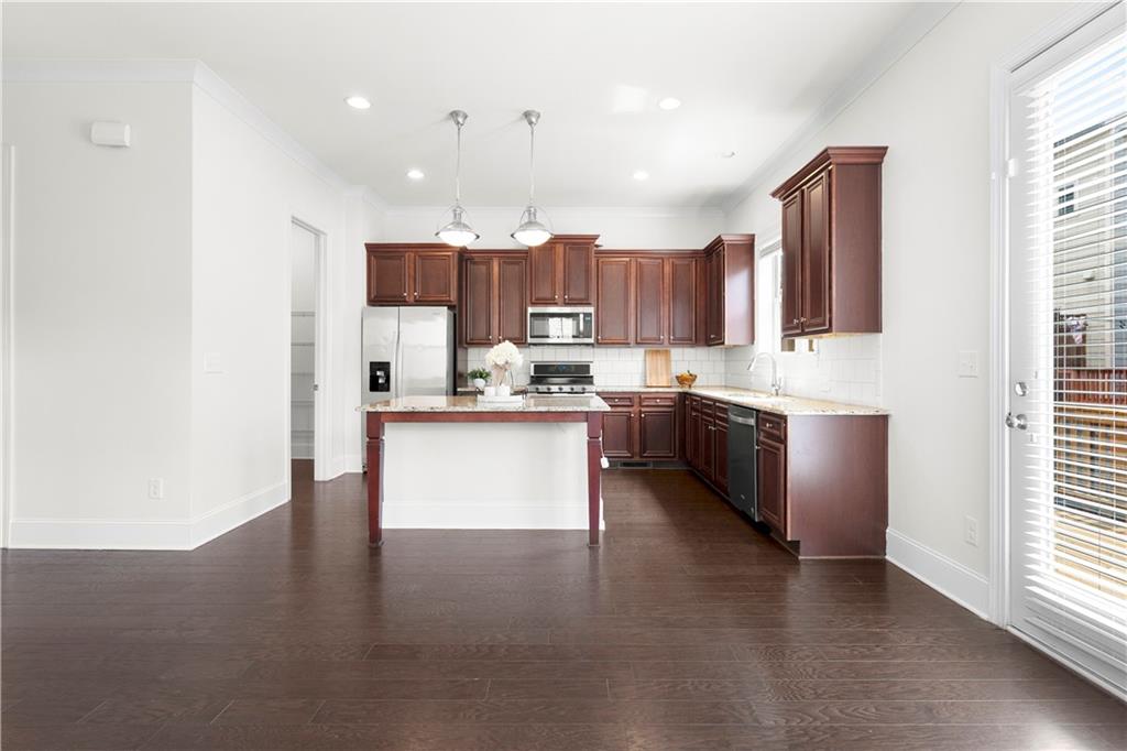 Four-bedroom three full bath end-unit townhome located in the highly sought-after Avondale Hills community. Freshly painted whole and garage. 10-foot ceilings on the main level and hardwood floors throughout, No Carpet. Enjoy a chef-style kitchen with generous island, and a walk-in pantry for effortless organization and an open-concept layout that flows into the dining area and onto the private deck. Expansive living room with oversized windows, streaming sunlight, and a charming gas fireplace as the focal point, pre-wired and ready for your TV setup. Upstairs, the bright primary suite offers a double vanity bathroom, large shower, and a walk-in closet. Two additional bedrooms, a full bath, and a spacious laundry room complete this level. Private bedroom suite located on the first level, includes another massive walk-in closet, and private full bath. This home is located just outside Historic Avondale Estates, only a couple of miles from Downtown Decatur, and a short drive to the Atlanta Beltline, Midtown, and Downtown Atlanta. Enjoy nearby shopping, restaurants, Publix, Your DeKalb Farmer's Market, and Marta is within walking distance.