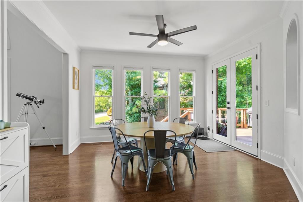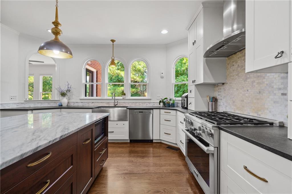 Welcome to this stunning four-sided brick traditional home, thoughtfully updated with modern finishes throughout and ideally situated on a fantastic corner lot just off a quiet cul-de-sac in Milton’s premier gated swim, tennis, and golf community—Crooked Creek. Located on one of the most sought-after streets in the neighborhood, Majestic Cove, this home offers timeless curb appeal and exceptional upgrades inside and out. As you enter, the impressive curb appeal sets the tone for what’s to come. Off the entry foyer, you'll find a dedicated office with custom built-ins that can also function as a guest bedroom thanks to its attached full bath. Nearby, the sun-filled formal living and dining rooms provide flexible space for everyday use or entertaining. At the heart of the home, the fully renovated kitchen features custom cabinetry, a spacious new walk-in pantry, and a smart, open-concept layout that flows effortlessly into the fireside family room and casual dining area. Step outside to enjoy a brand-new deck that extends your living space—perfect for relaxing evenings or entertaining under the stars. Throughout the home, you’ll find new hardware and fixtures in every room, updated light switches and baseboards, fresh interior paint, and beautifully refinished hardwood floors on both the main and upper levels. Upstairs, the oversized primary suite is a true retreat featuring hardwood floors, a cozy fireplace, and a luxurious spa-like bathroom with heated floors, a soaking tub, a frameless glass shower, a dedicated in-line water heater, and a custom walk-in closet system. Secondary bedrooms also feature hardwood flooring and have been updated with stylish modern bathrooms and generous closet space. The finished terrace level adds even more versatility and room to spread out, featuring brand-new luxury vinyl plank flooring, a full bedroom and bathroom, a kitchenette, and open flex spaces ideal for working from home, fitness, or movie nights. You'll also find an expansive craft room and workshop, perfect for any hobbyist, along with one of the home’s three fireplaces to round out the cozy vibe. Additional upgrades include four Nest thermostats for multi-zone temperature control, a new laundry room floor and utility sink, two new exterior doors, new garage doors, a fully fenced backyard, and newer mechanical systems including HVAC and water heater. The oversized three-car garage provides ample space for storage, hobbies, and everyday convenience. Tucked away on a quiet street near the back of the neighborhood, you’re just minutes from top-rated schools, downtown Alpharetta, and everything Milton has to offer. Crooked Creek residents also enjoy access to world-class amenities including golf, tennis, swimming, pickleball, Basketball and an active calendar of events for all ages. You don’t want to miss this one!